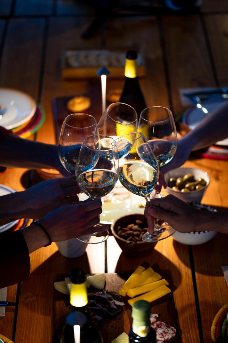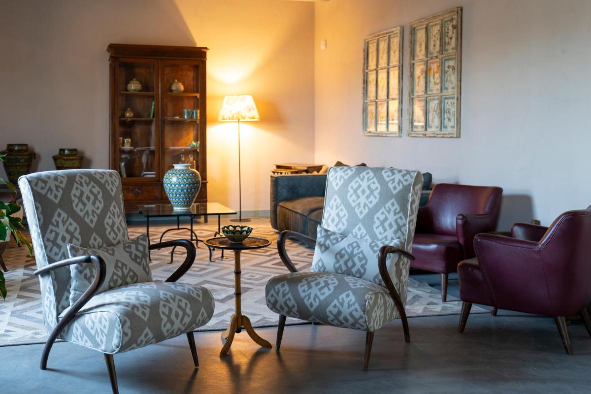 Guests can lounge by the outdoor pool with bar service, or unwind in cozy lounges and shaded garden nooks, all framed by rows of vineyards and herb beds.