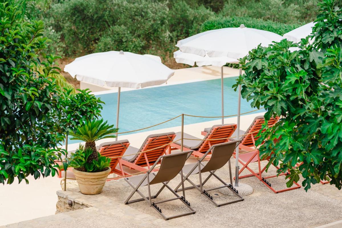 The property features 10 uniquely styled rooms, each named after a flower and decorated with Sicilian fabrics, exposed stone, and warm wooden accents. All include air conditioning, private bathrooms, and terraces overlooking the estate.