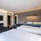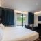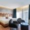 The hotel features 40 exclusive accommodations, all configured as Suites, with generous sizes ranging from 30 to 80 square meters (e.g., Comfort Suite, Deluxe Suite, Executive Suite). All Suites are furnished with a contemporary design, offering double-layer mattresses, high-quality bedding, and Air Conditioning. Amenities include a minibar, espresso machine, TV with digital channels, and Free Wi-Fi. Many Suites also offer a Private Terrace or balcony with city views.