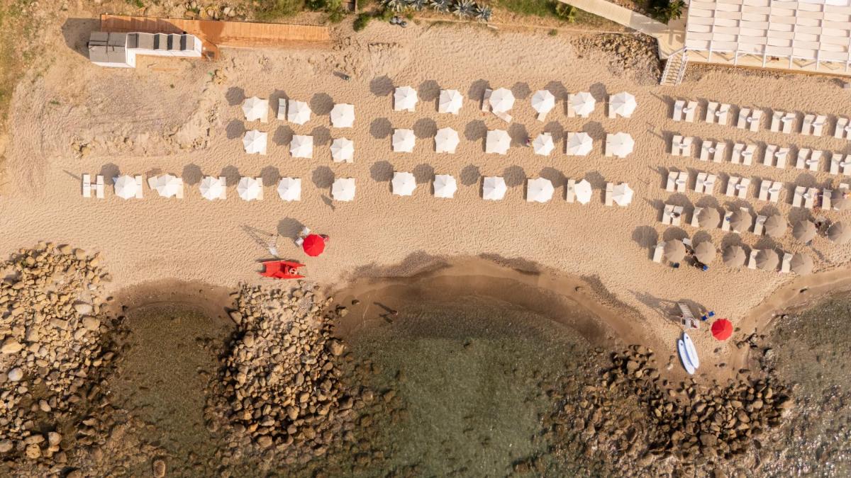 Resort life flows between panoramic pools, wooden solariums and easy access to clear water among rocks and tiny coves.