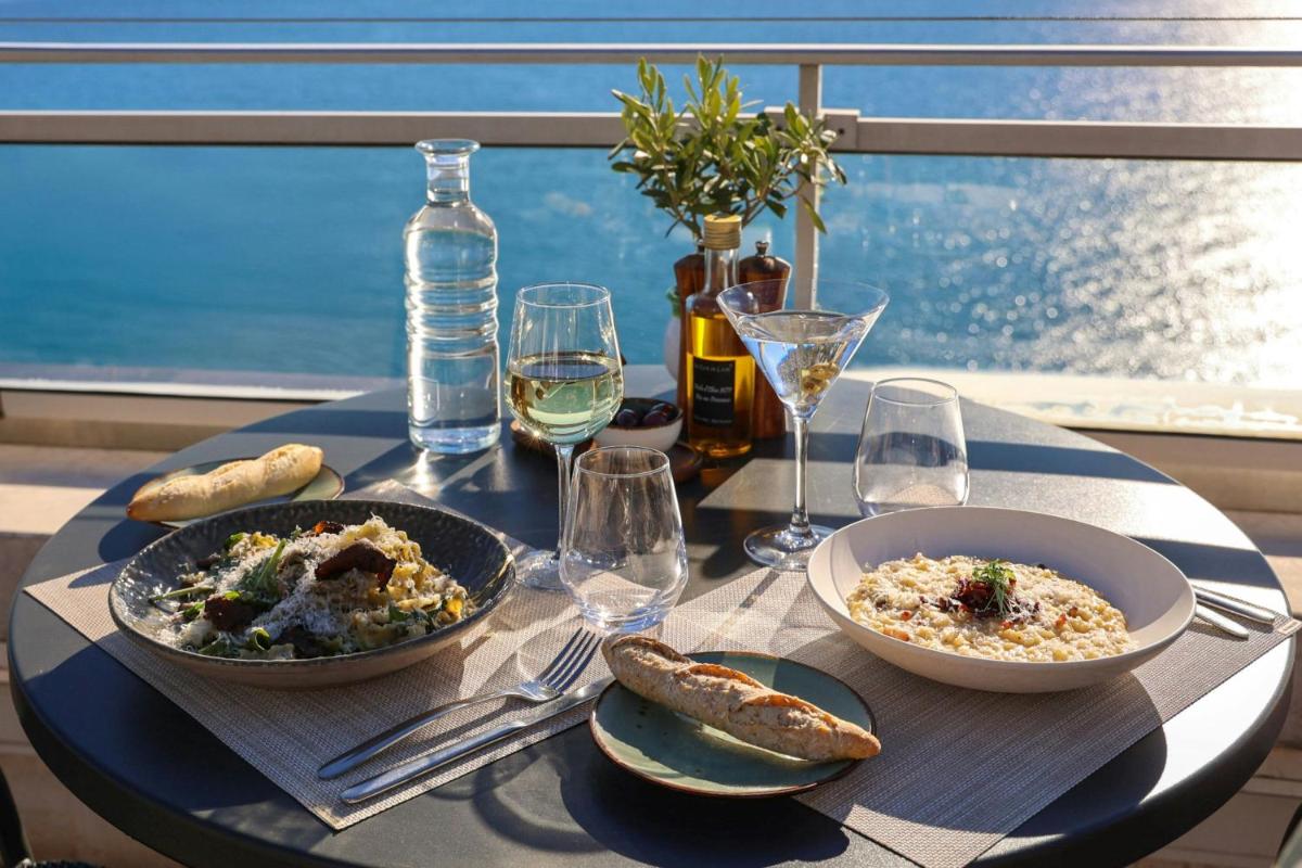 The interiors reflect the bright and vibrant atmosphere of the French Riviera, with an elegant design that incorporates marine colors, modern furnishings, and large spaces. The rooms and suites, many with private balconies, are designed to maximize the sea view and ensure superior comfort.