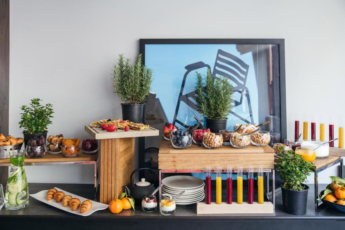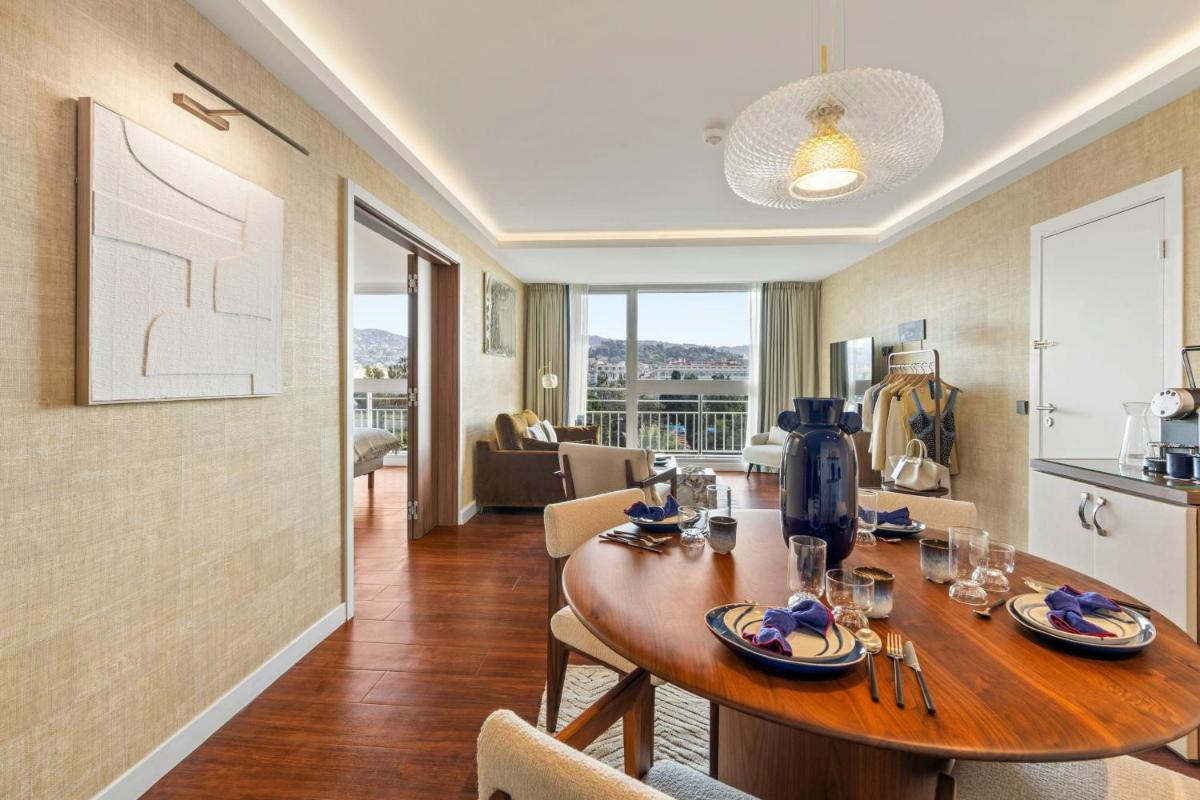 The hotel's highlight is undoubtedly its spectacular rooftop. The rooftop pool and sun terrace offer a 360-degree view spanning from the Bay of Angels to the surrounding hills, making it the ideal spot for a sunset cocktail or sunbathing in an exclusive setting.