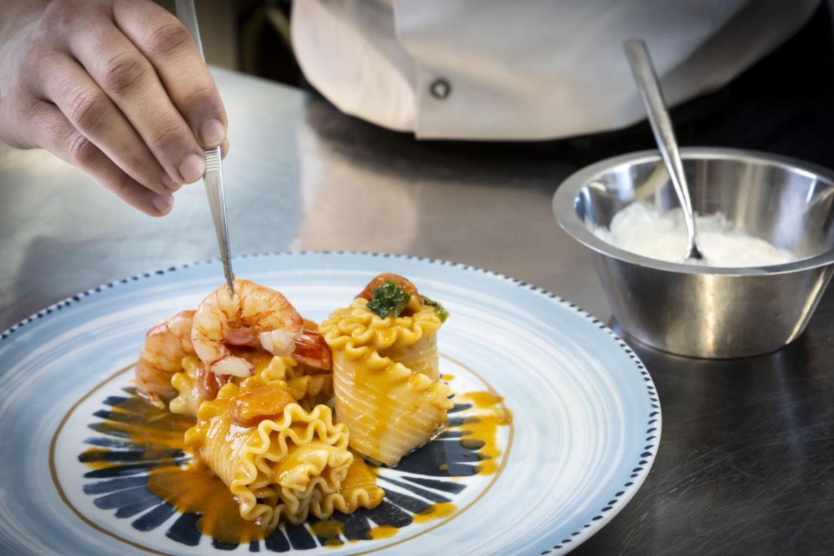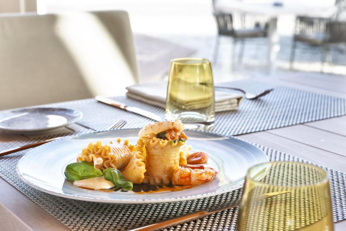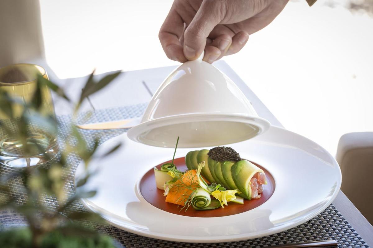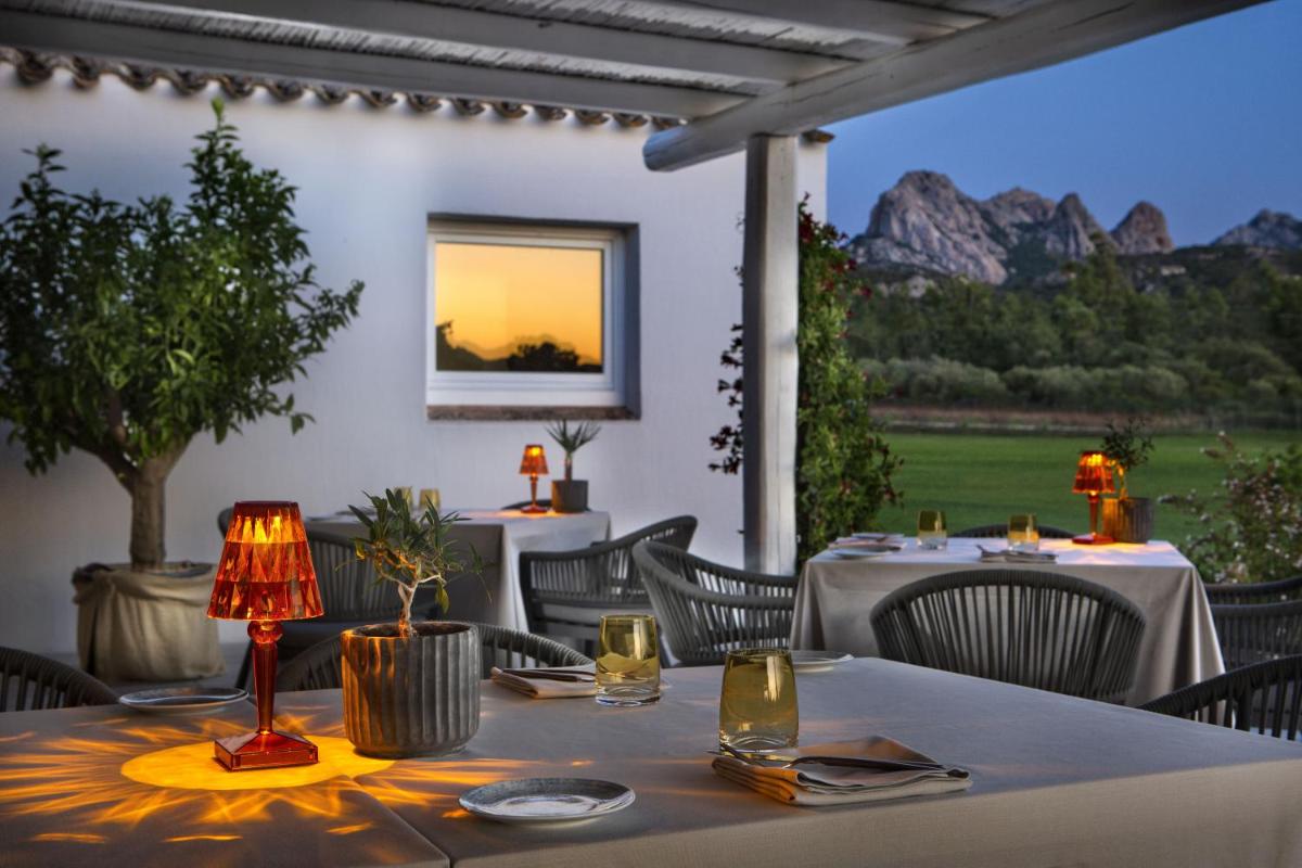 The culinary offer is managed by the Li Neuli Restaurant, a gourmet experience that offers Mediterranean cuisine with fresh, local products, often grown on-site, and a selection of refined wines. The restaurant's Terrace offers a suggestive view over the Biolago and Gallura. À la carte breakfast is always included. There are also elegant cocktail bars, with drinks prepared with juices extracted from fresh fruit.