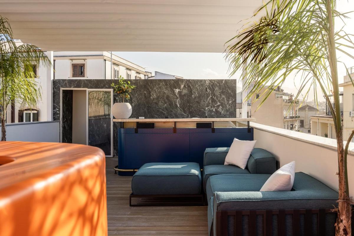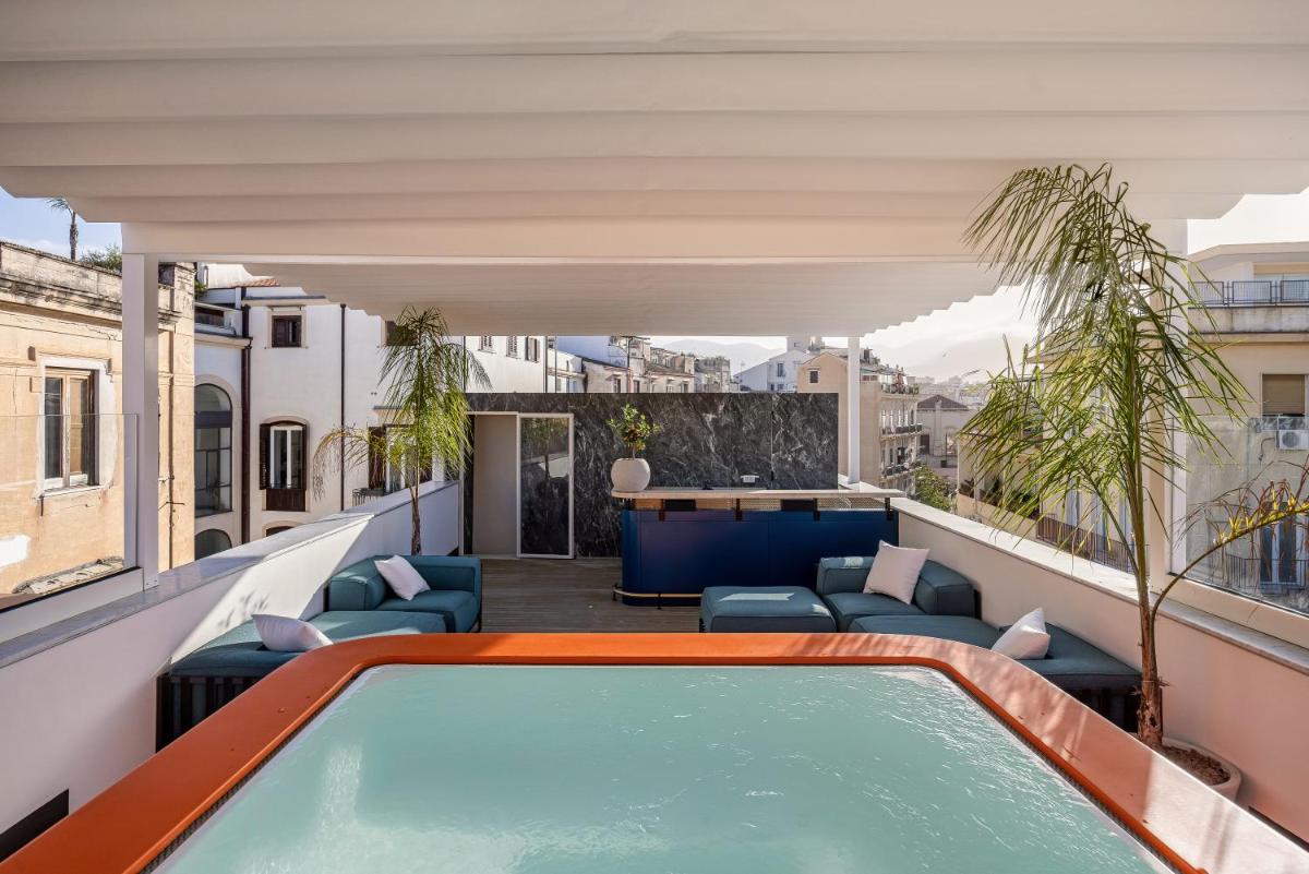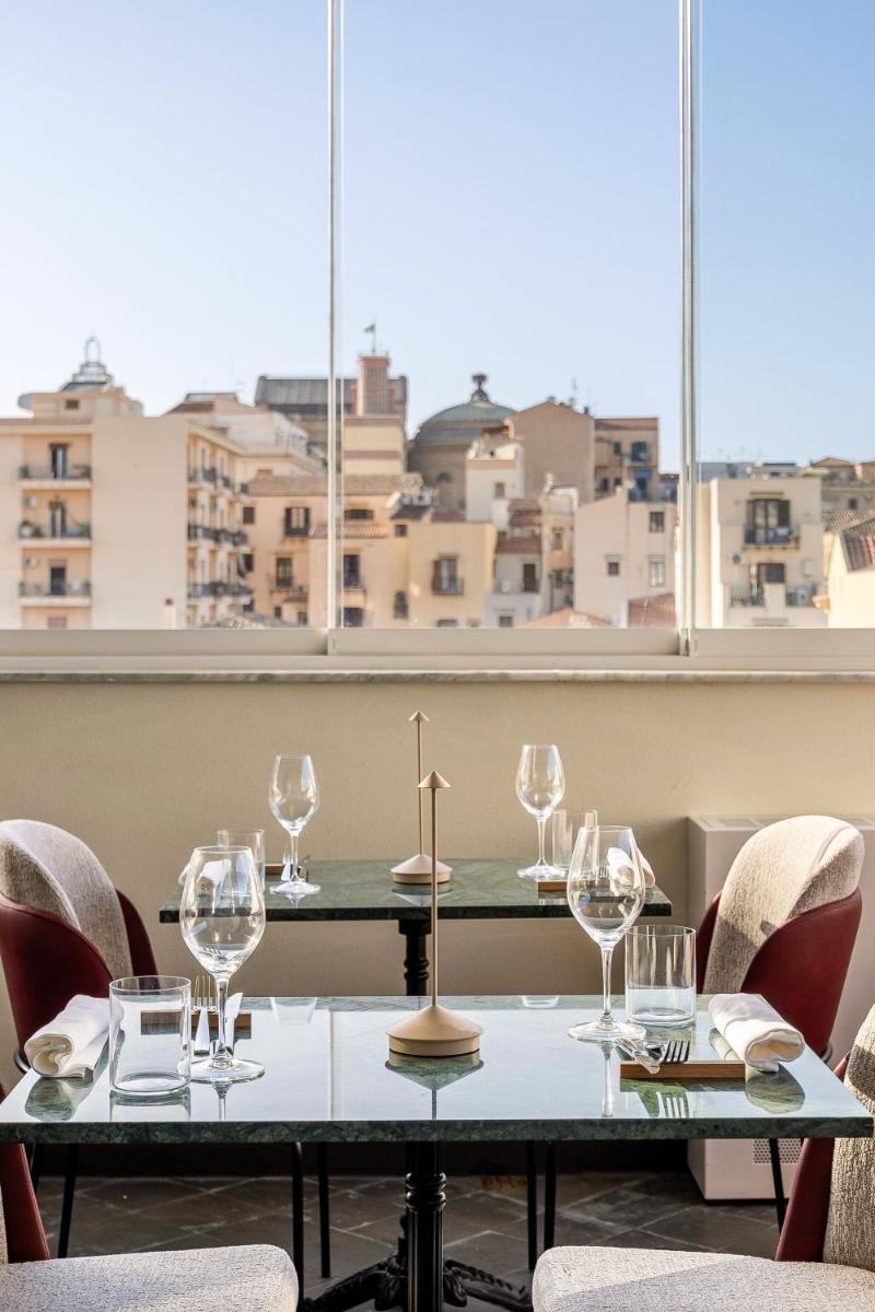 Guests can unwind in a rooftop spa and Jacuzzi area with panoramic views over Palermo’s skyline. A rooftop terrace serves as an elegant setting for events, private tastings and sunset cocktails.