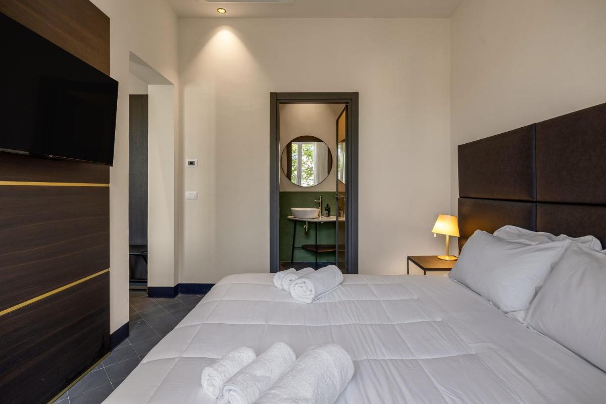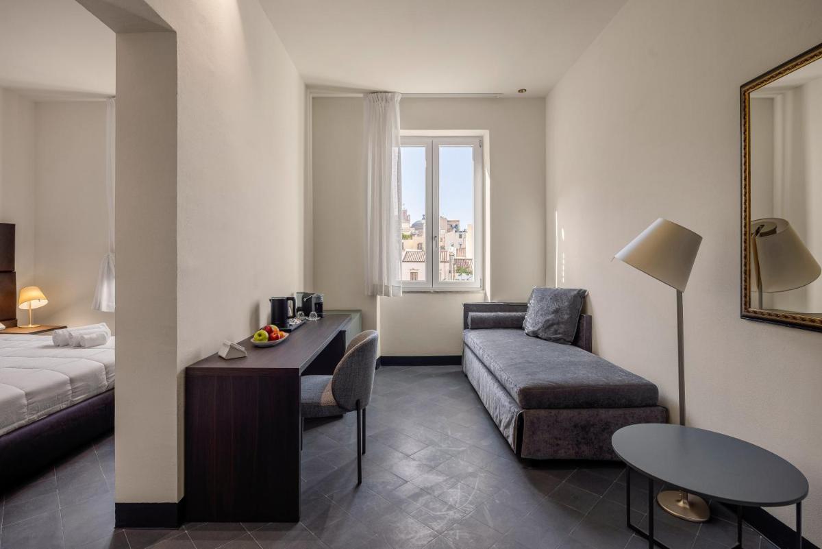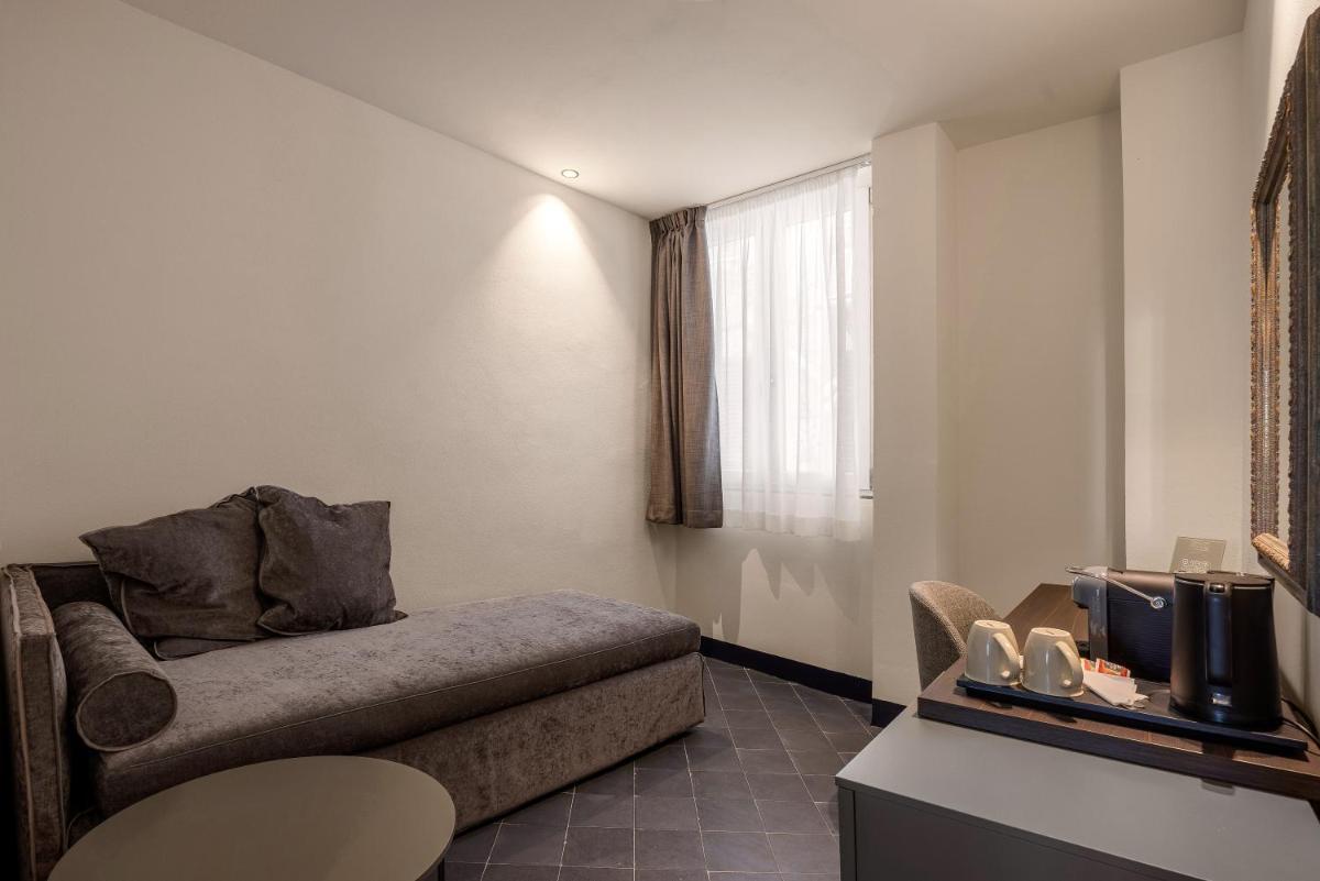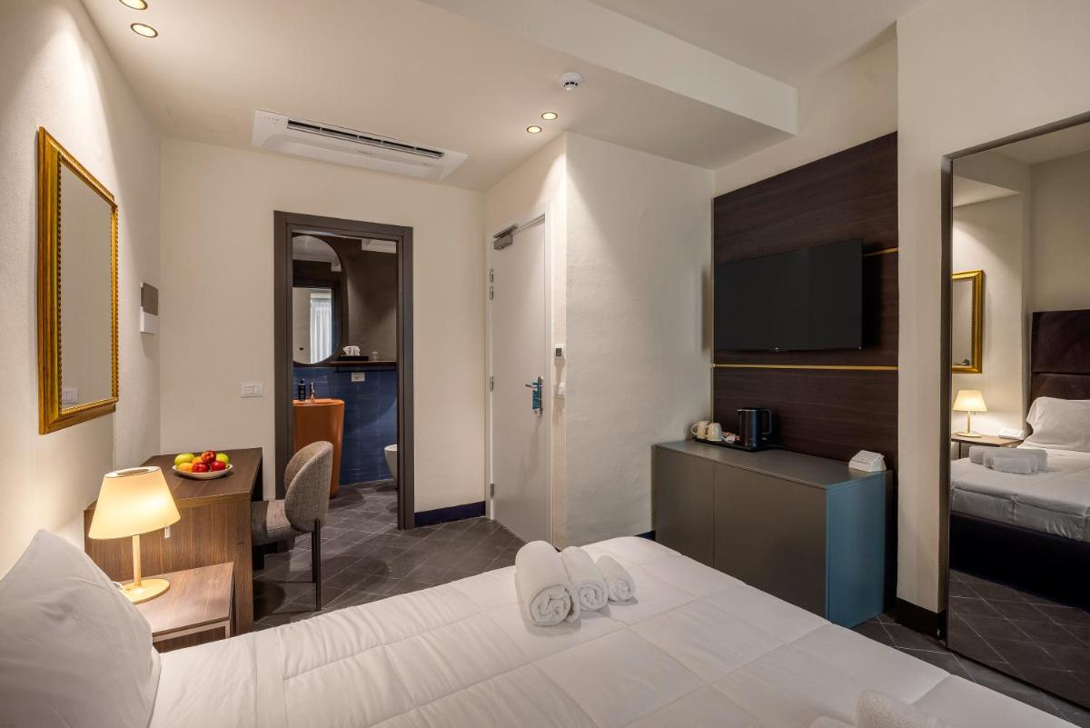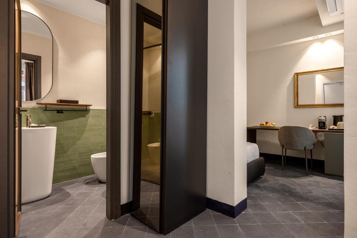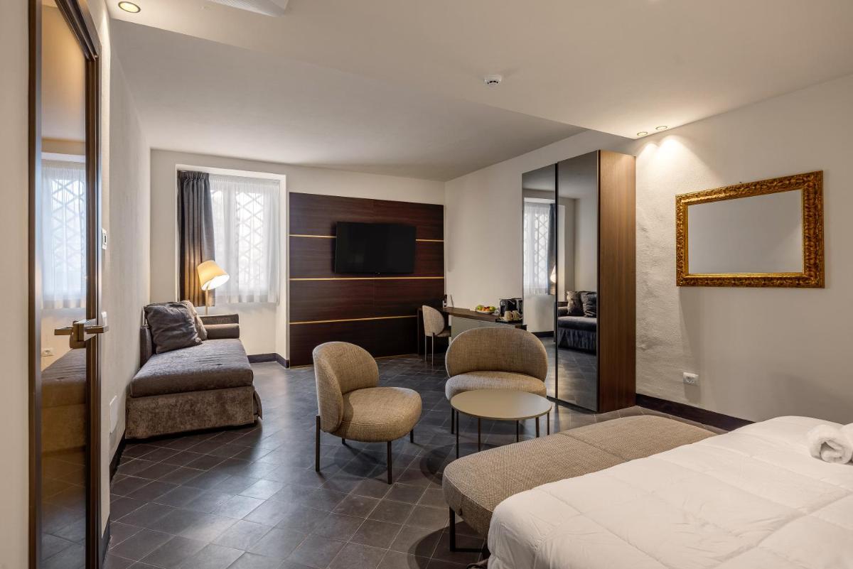 The hotel offers 19 individually styled rooms and suites combining original architectural features—such as frescoed ceilings and wooden beams—with modern comforts including air conditioning, flat‑screen TV, minibar, Wi‑Fi and a private bathroom. Select rooms offer courtyard or city views.