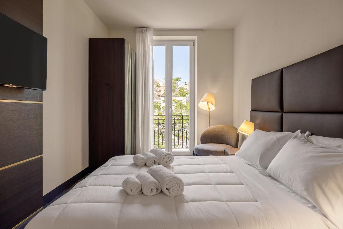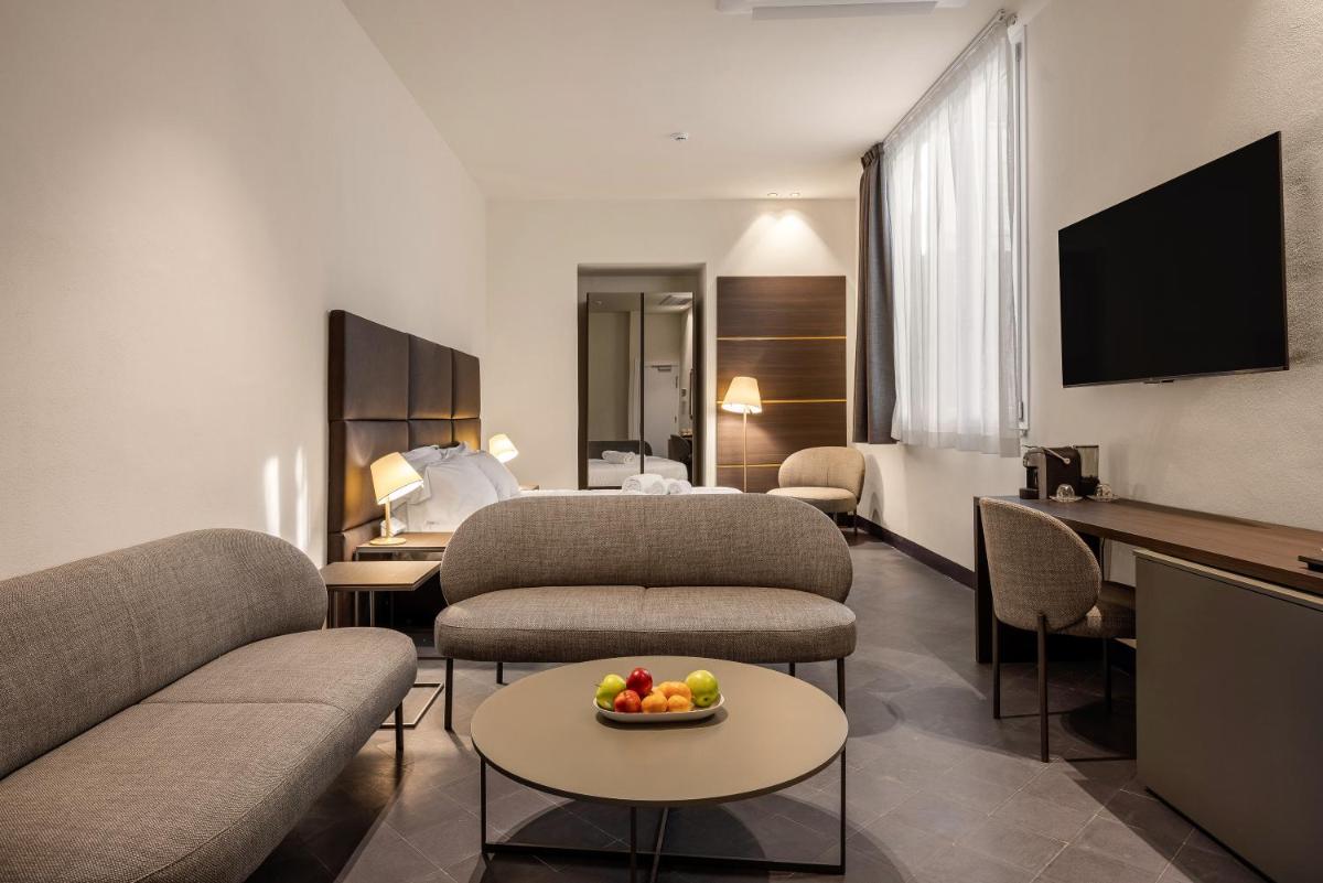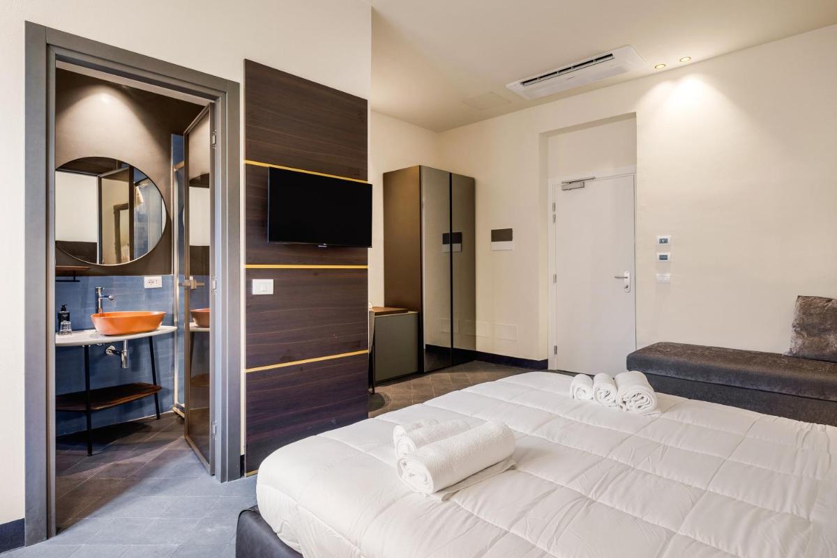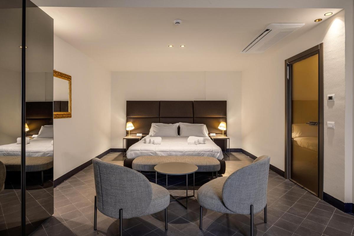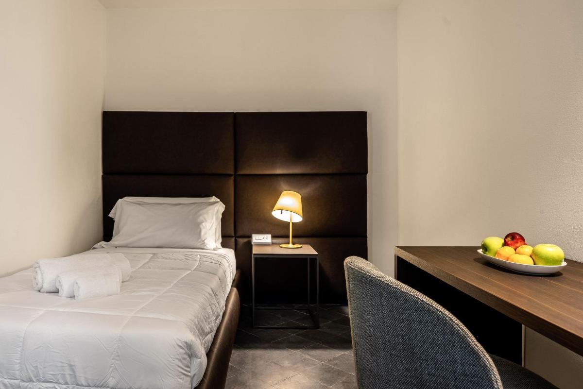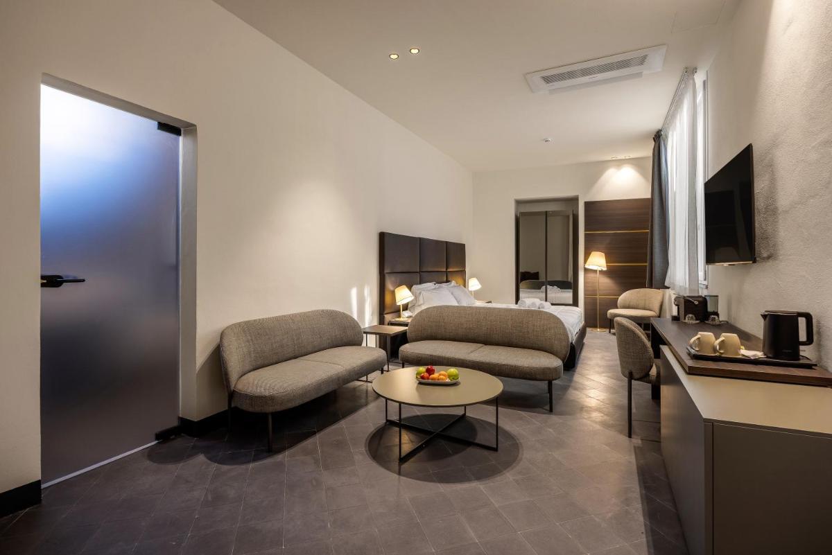 The hotel offers 19 individually styled rooms and suites combining original architectural features—such as frescoed ceilings and wooden beams—with modern comforts including air conditioning, flat‑screen TV, minibar, Wi‑Fi and a private bathroom. Select rooms offer courtyard or city views.