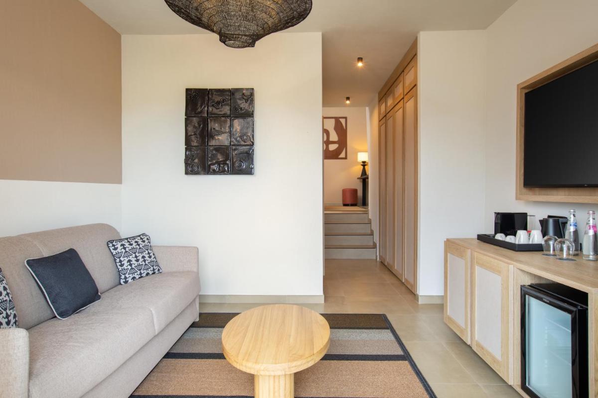 The resort features spacious, bright rooms and suites decorated in a contemporary Mediterranean style. Many accommodations boast private balconies or terraces with panoramic views over the crystal-clear sea or lush gardens.