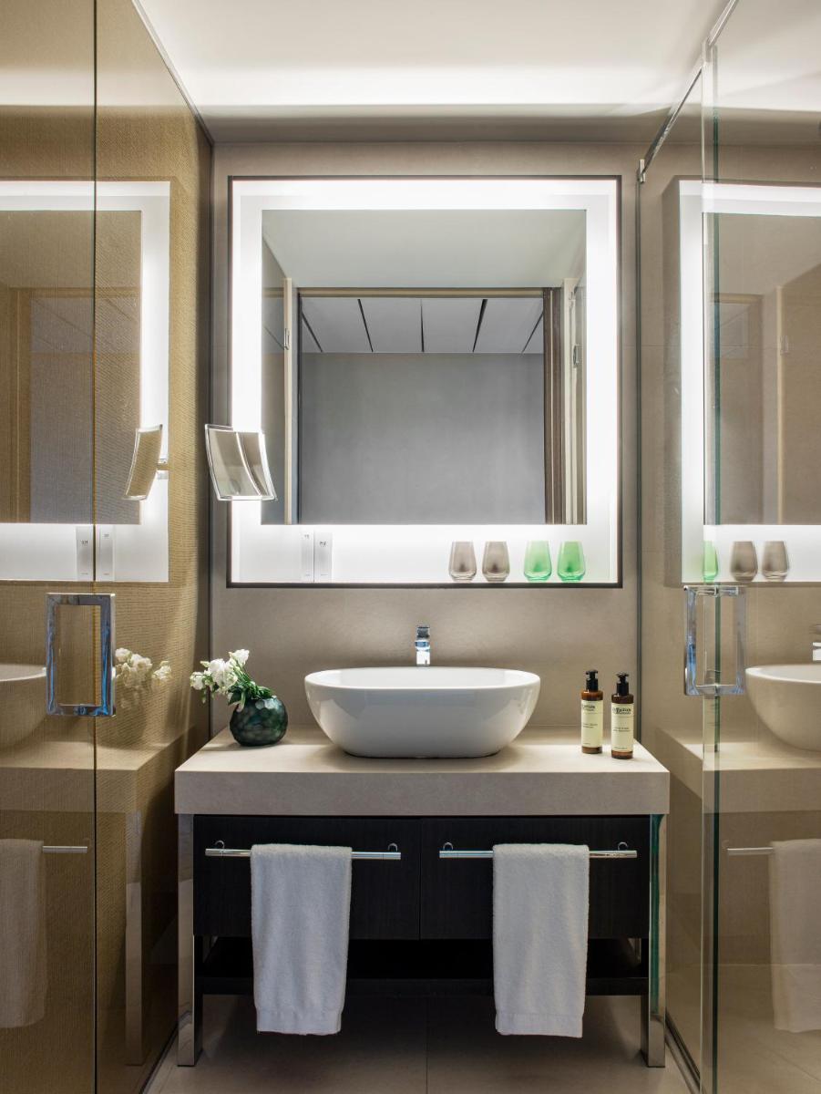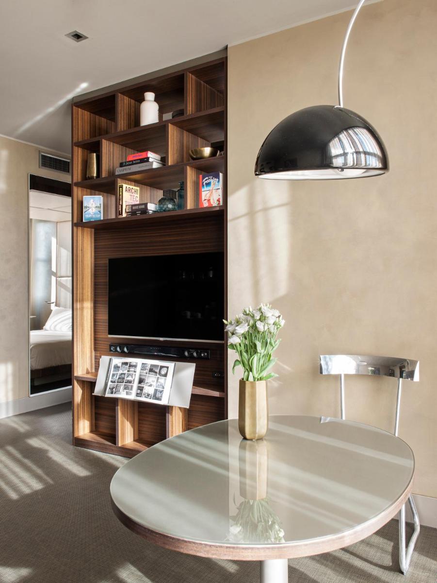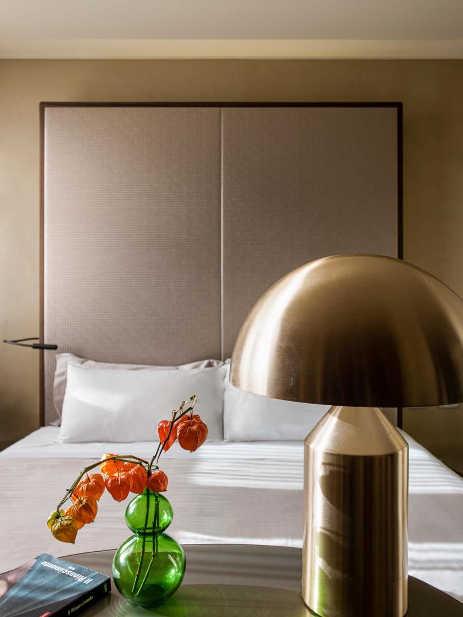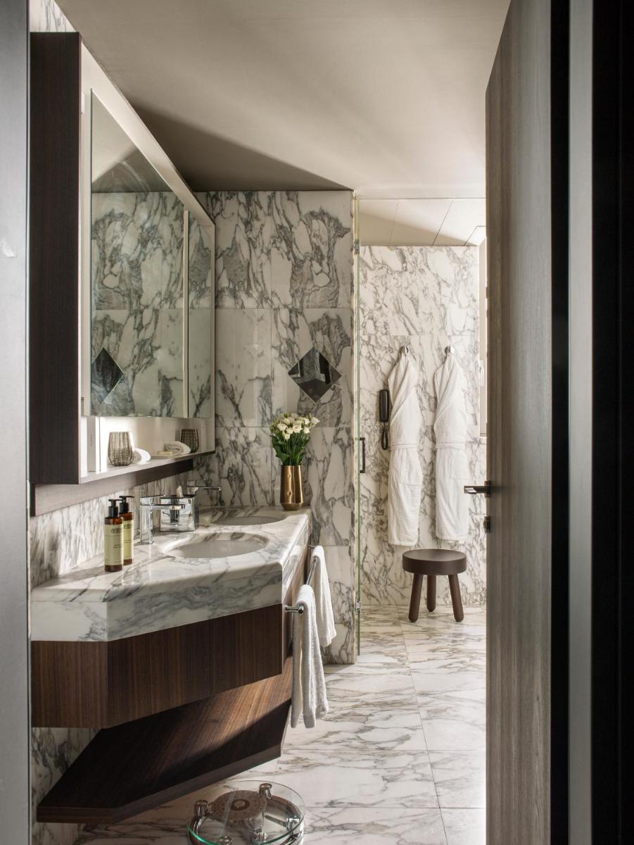 The 132 rooms and suites are designed with a clean, contemporary style, featuring neutral tones, eucalyptus wood furnishings, and designer lamps (such as Oluce and Flaminia). They are equipped with all the comforts of a 5-star hotel: Egyptian cotton linens, minibar, Smart LED TV, and free WiFi. The most luxurious suites offer a dedicated butler service (Aura Manager), marble bathrooms, and large private terraces with spectacular views of the city and the Alps on clear days.
