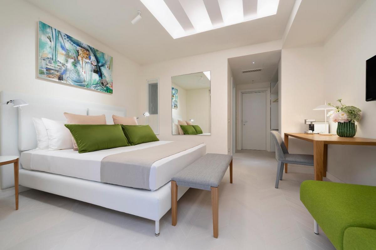 The rooms and suites have been renovated with a contemporary and elegant design, characterized by light tones, natural materials, and luxury finishes. Many feature private terraces or balconies that directly overlook the sea or the lush gardens. All accommodations are equipped with air conditioning, satellite TV, minibar, and free WiFi. The most prestigious suites include a private outdoor hot tub.