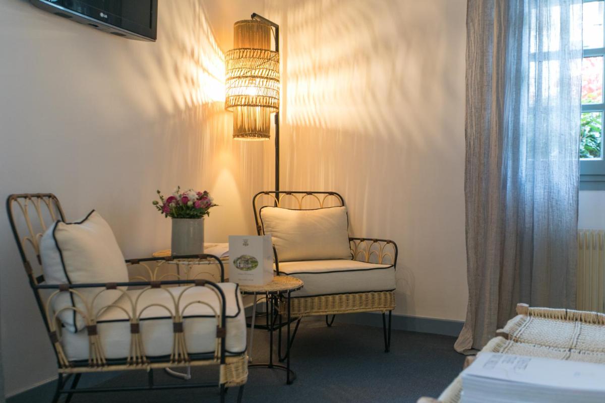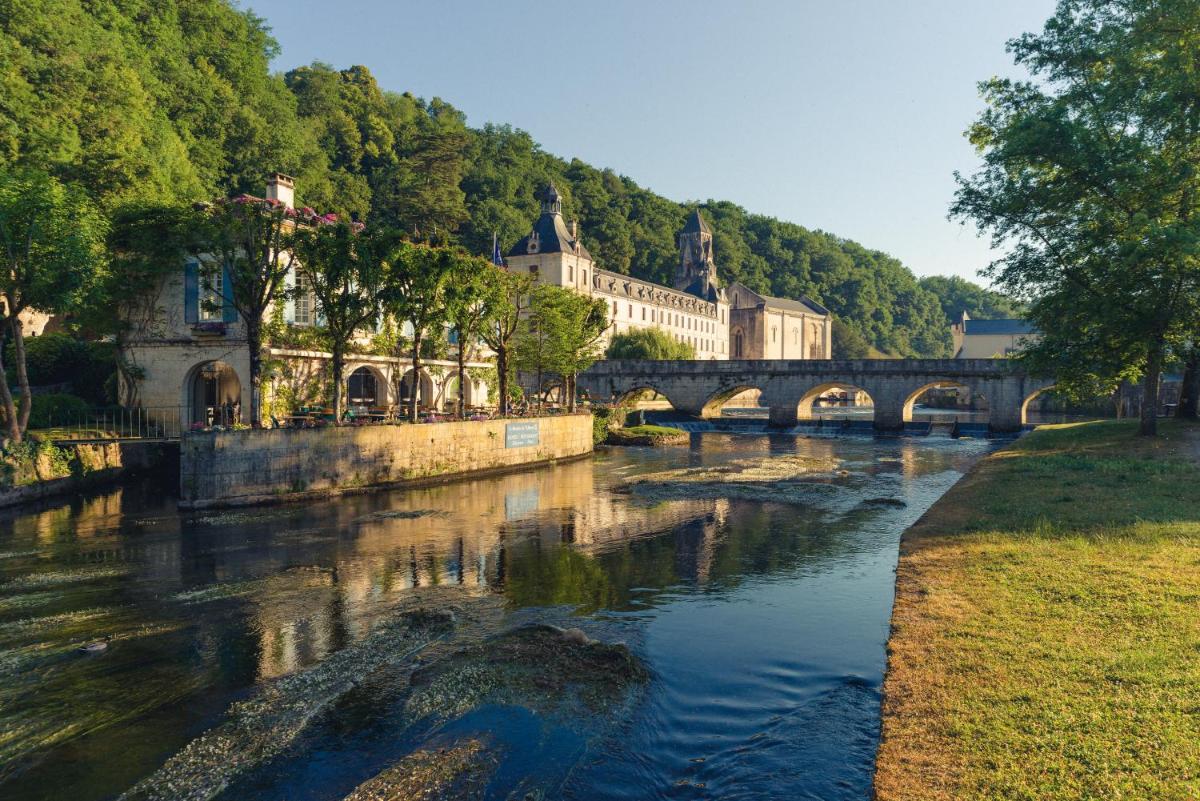 The hotel is composed of three ancient houses creating a picturesque complex. The interiors are decorated with a classic taste that enhances original elements, such as exposed beams and local stone. The rooms and suites are individually decorated, offering sublime comfort and an enchanting view of the river, the Abbey, or the gardens.