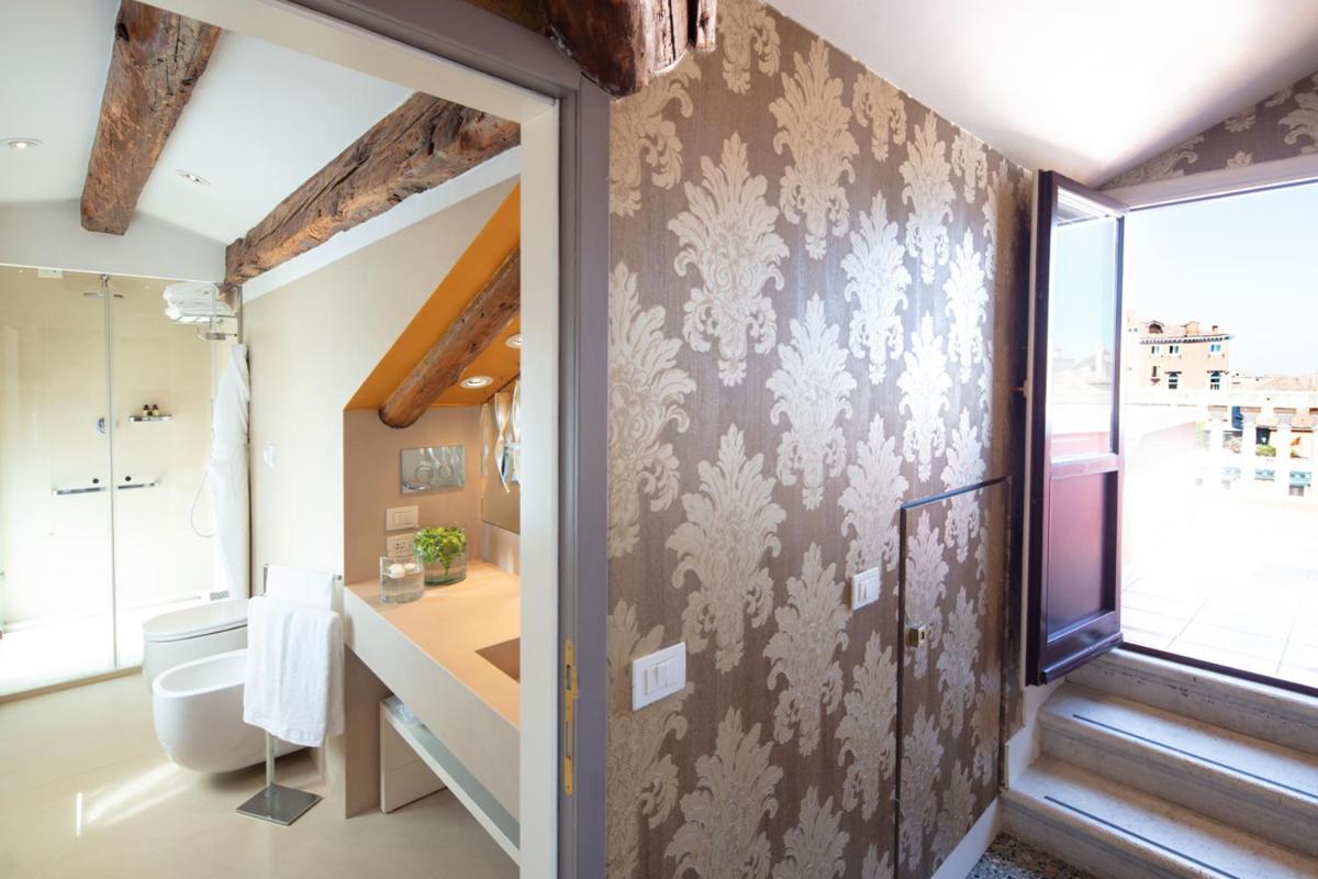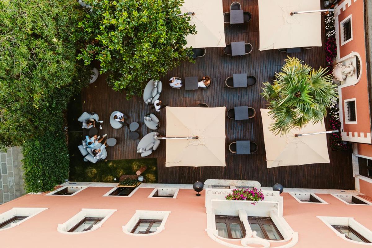 The 49 rooms and suites of the Palazzo reflect the classic Venetian style, featuring antique furniture, Murano glass chandeliers, and Venetian terrazzo floors. While maintaining a historic atmosphere, each accommodation is equipped with the most modern comforts, including air conditioning, free WiFi, and satellite TV. The Superior Rooms and Suites often offer balconies or windows with views of the Grand Canal or the picturesque Rio de Sant’Angelo, ensuring an unforgettable stay.