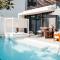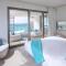 The design stands out for its minimalist and contemporary aesthetic, characterized by white tones, clean lines, and large windows opening onto the Arabian Gulf. The rooms, suites, and private pool villas are designed to offer maximum privacy and modern luxury.