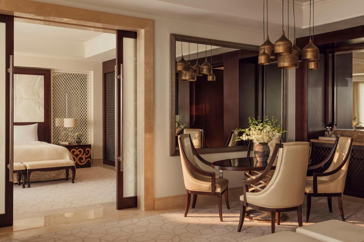 This two-bedroom Villa is steps away from the beach with a private temperature-controlled swimming pool with a majlis-style space shrouded by an oversize gazebo. Includes daily breakfast for two. Unlimited complimentary access to nearby waterpark during stay. Guests enjoy complimentary use of fitness facilities, access to perfectly chilled swimming pools, expansive private beach and gardens.