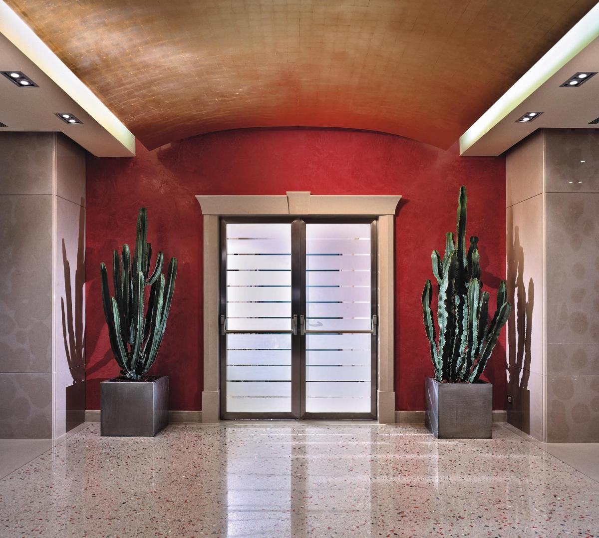 A major highlight of the Palace Bonvecchiati is its wellness area, a true sanctuary of relaxation that includes a sauna, a Turkish bath, and a Jacuzzi tub. The buffet breakfast is rich and varied, served in an elegant room. For meals, the on-site restaurant, Il Giardinetto, offers Venetian and international specialties. In the evening, guests can unwind with a drink in the sophisticated lounge bar.