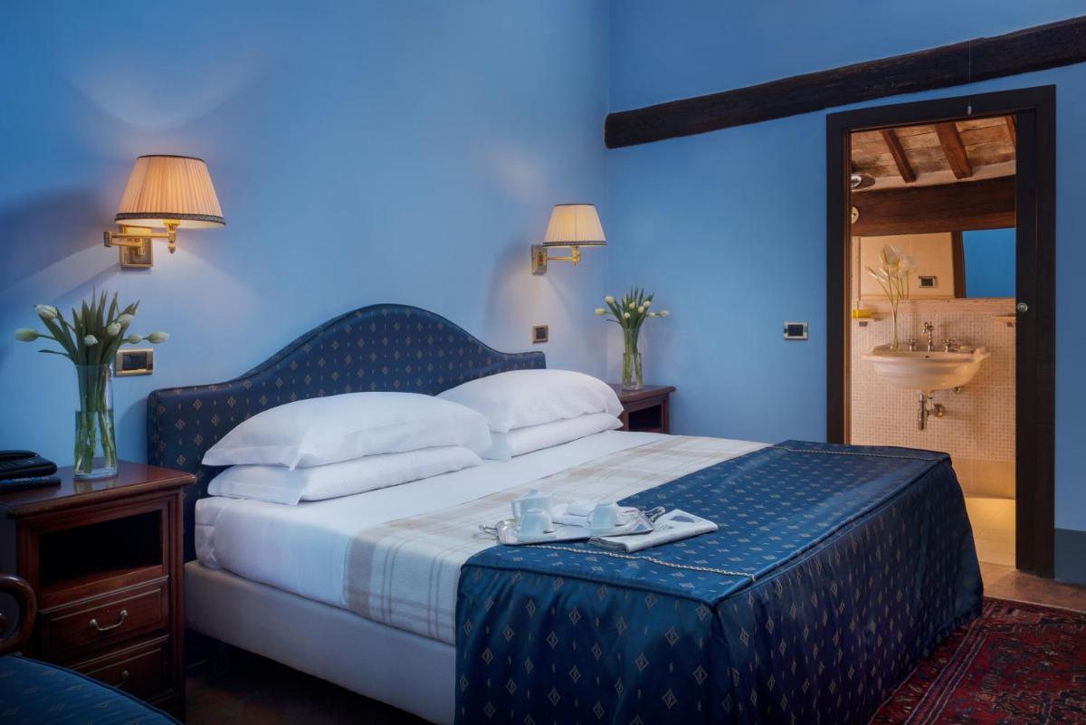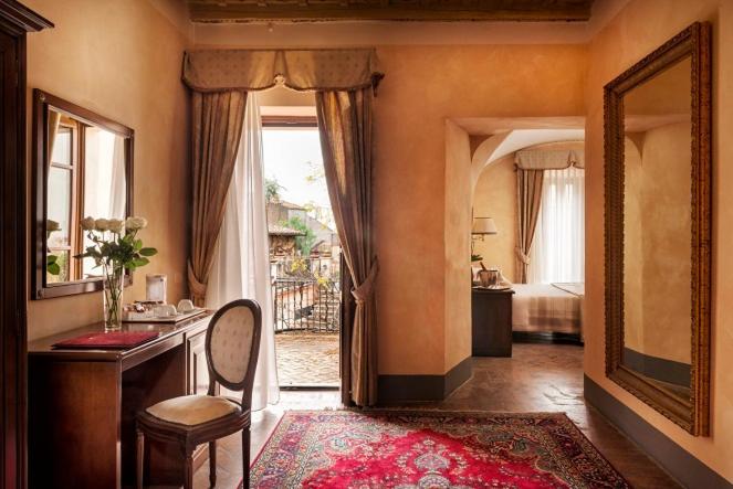 The rooms and suites have been carefully restored, combining the historic architecture of the building (such as the cross vaults and stone walls) with a contemporary and functional design. The accommodations offer a welcoming and tranquil environment. All rooms are equipped with air conditioning, satellite TV, minibar, and a stable complimentary Wi-Fi connection. For a more evocative experience, some rooms directly overlook the cloister.
