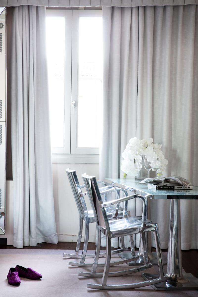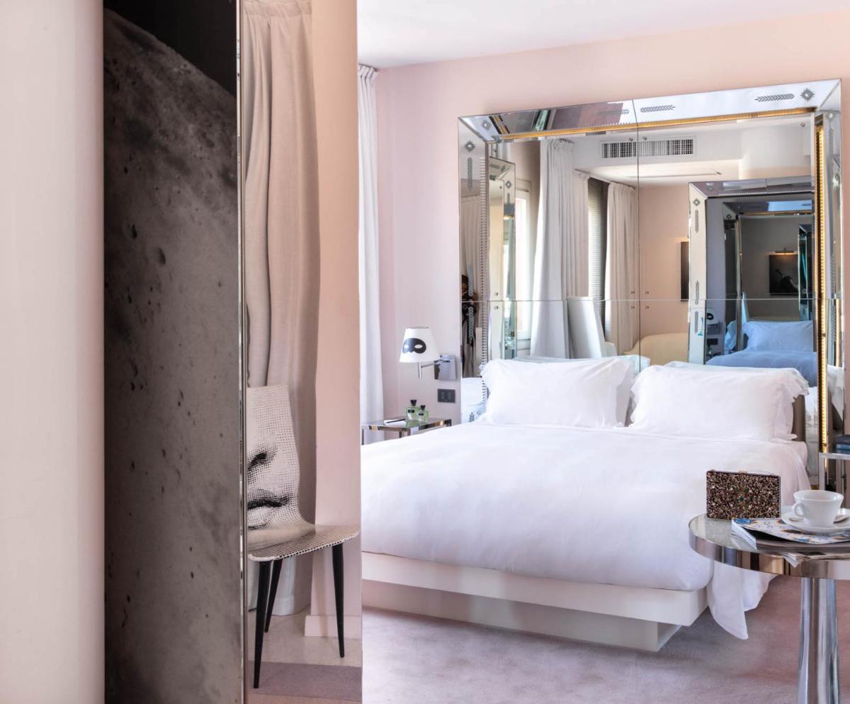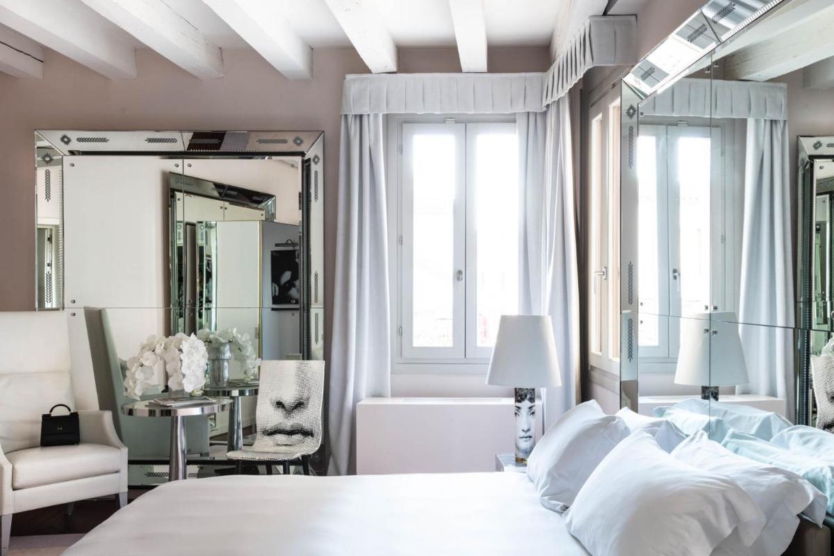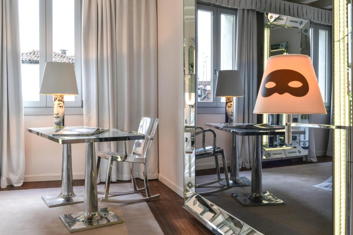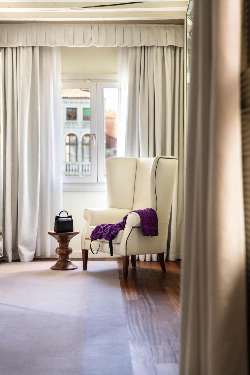 The 25 rooms and 5 suites are bright and feature a contemporary and “ExtraOrdinary” charm, sharply contrasting with the historic Venetian architecture. The most prestigious accommodations offer spectacular views of the Grand Canal, including the luxurious Signature Suite and the attic suite with a view. Other rooms and junior suites overlook the picturesque rooftops of Venice; some, like the Suite with Terrace and Hammam, feature private outdoor spaces or in-room wellness facilities.