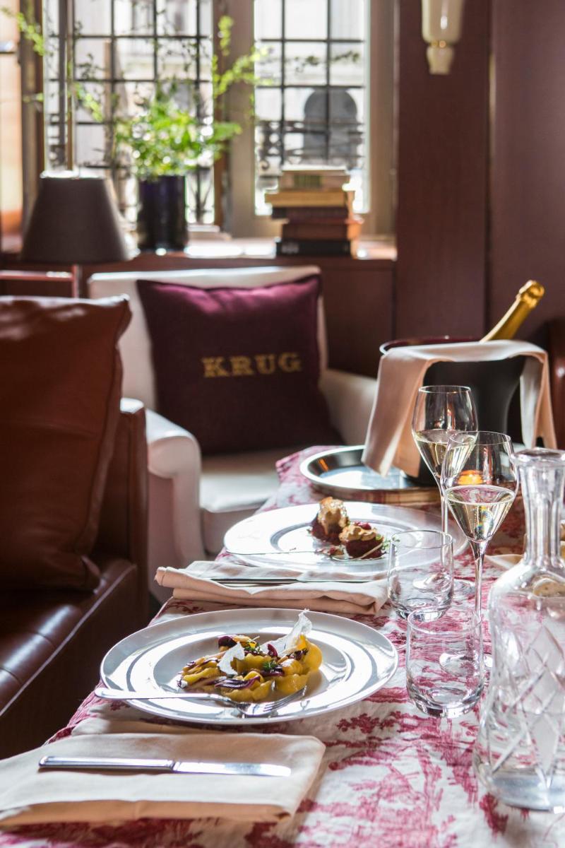 The in-house restaurant offers an innovative approach to Italian and Venetian cuisine, complete with a “show kitchen” and a fresh, contemporary atmosphere. Breakfast service is extended until noon. The hotel features an elegant Lounge with Grand Canal view and a Rooftop Terrace, which often host private events, DJ sets, and dinner shows, contributing to its sophisticated reputation.