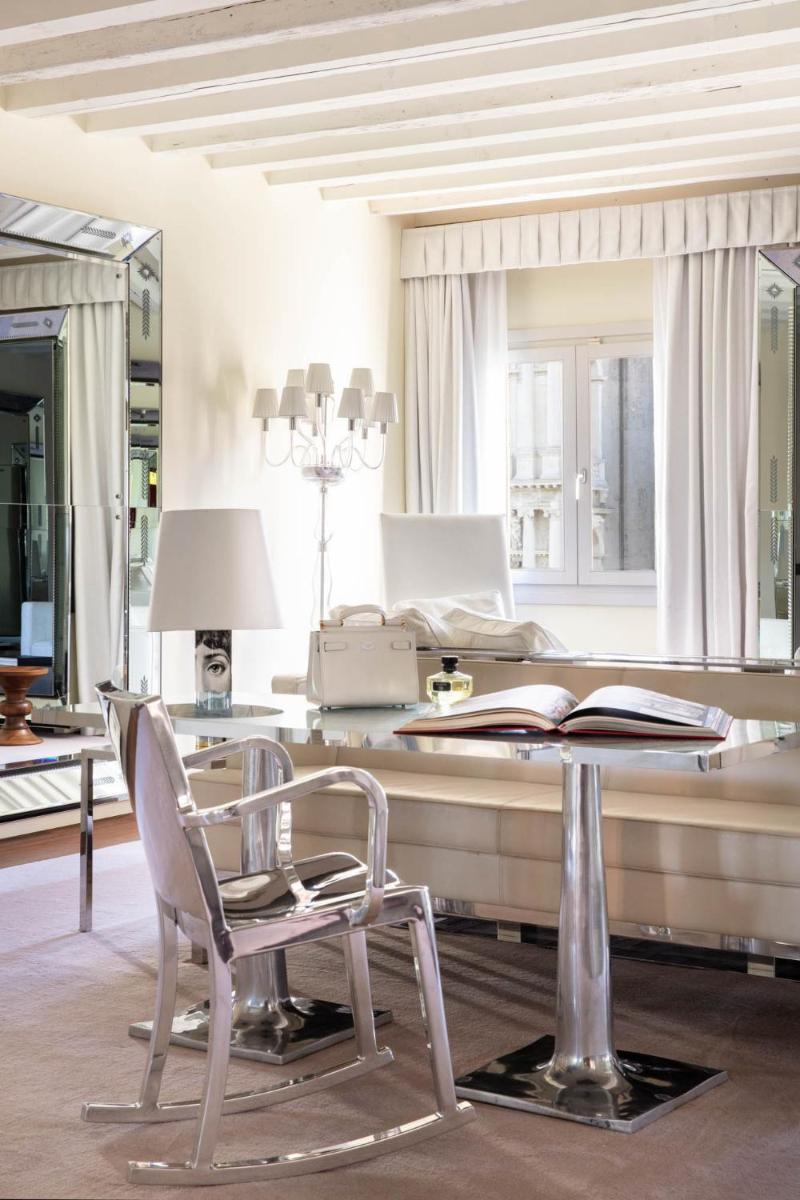 The Palazzina Grassi is an exclusive 5-star boutique hotel, the only one in Italy entirely designed by the starchitect Philippe Starck. Located in an elegant 17th-century palace in the quiet San Marco Sestiere, in the San Samuele area, the hotel boasts a privileged position directly overlooking the Grand Canal and a private water taxi dock. It is renowned as the “most glamorous” spot in Venice, ideal for luxury stays, exclusive events, and parties.