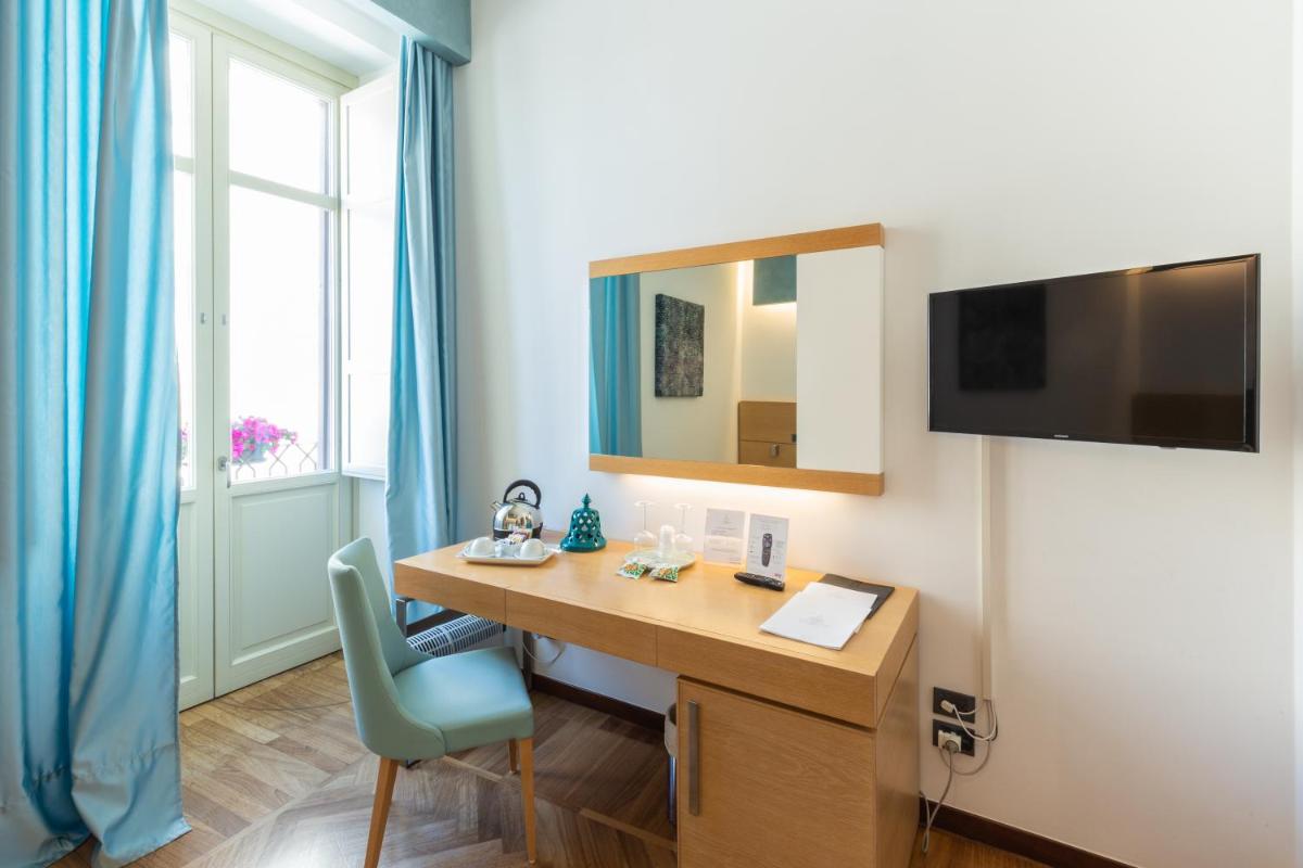 The hotel offers approximately 10 rooms, including Classic, Deluxe, Triple, and Junior Suite, all decorated in a classic and elegant style. The accommodations are spacious, bright, and offer guests an exclusive choice: sea view overlooking the port or Cathedral view. All rooms are equipped with air conditioning, flat-screen TV, minibar, tea/coffee making facilities, and an electronic safe with a laptop plug. Private bathrooms include bathrobes, slippers, and complimentary toiletries. Free WiFi is available throughout the property. Accessible rooms equipped for disabled guests are available.