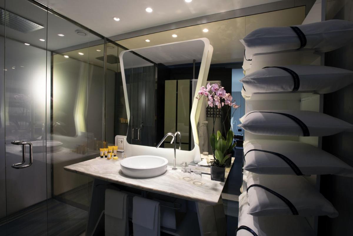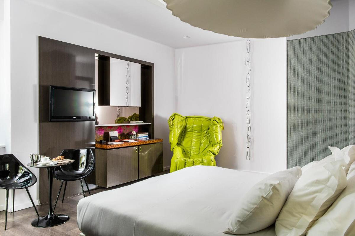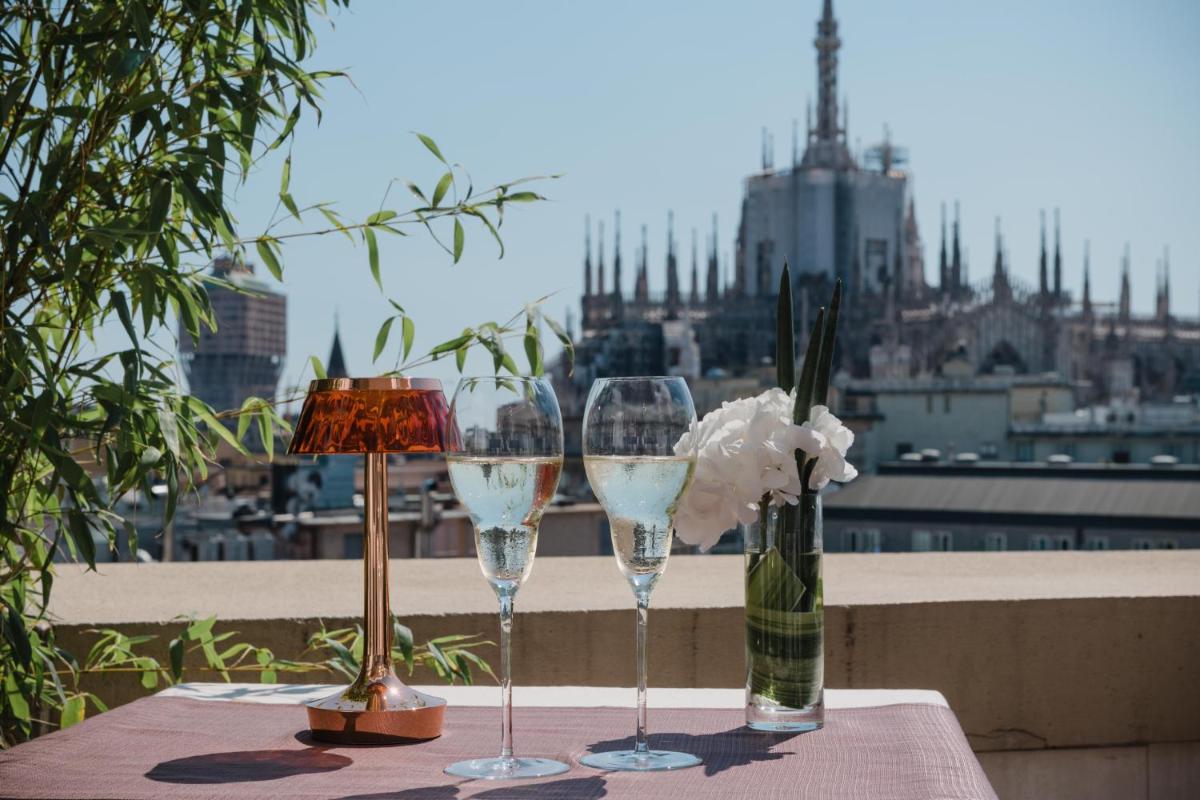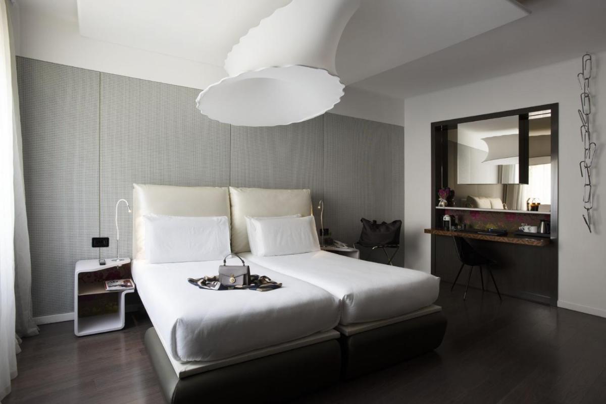 The hotel features 154 soundproofed rooms and suites, each furnished with modern design, elegant furniture, and artistic details. The accommodations are designed to ensure maximum comfort and a sense of exclusivity. Types range from luxurious rooms to exclusive suites that, in some cases, offer a view of the Duomo or private balconies. All accommodations are equipped with: Luxury amenity kit (e.g., Acqua di Parma), minibar, tea/coffee making facilities, desk, satellite TV, and Free Wi-Fi.