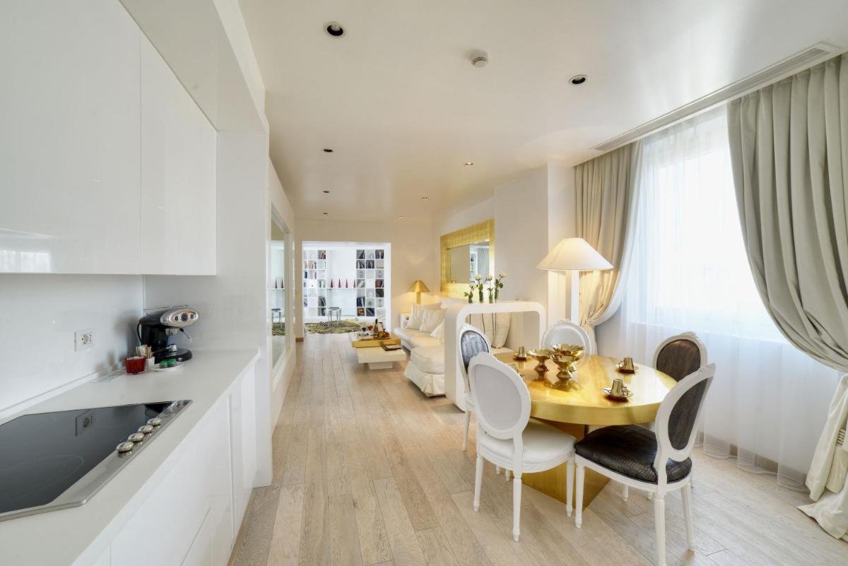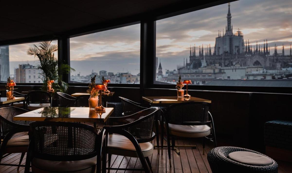 The culinary offering reflects the design's sophistication, with several options. The Meet & Meat Restaurant focuses on regional specialties and a selection of meats. The hotel also boasts an elegant internal Bar & Lounge and a sophisticated Champagnerie. Breakfast, served in a glamorous setting, offers Italian and international flavors. The renowned Latitude 45 Terrace (rooftop) provides a perfect location for cocktails with panoramic views over Milan's shopping streets.