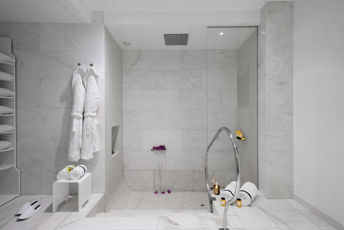 The wellness center at Palazzo Matteotti, designed by Simone Micheli, is a true avant-garde urban SPA, conceived for total relaxation. The wellness area includes a striking Heated Indoor Pool with hydromassage and waterfall, Sauna, Hammam (Turkish Bath), and a reaction pool. Guests can enjoy a wide range of treatments and massages in one of the six cabins. For those wishing to stay fit, a modern, well-equipped Fitness Center is available.
