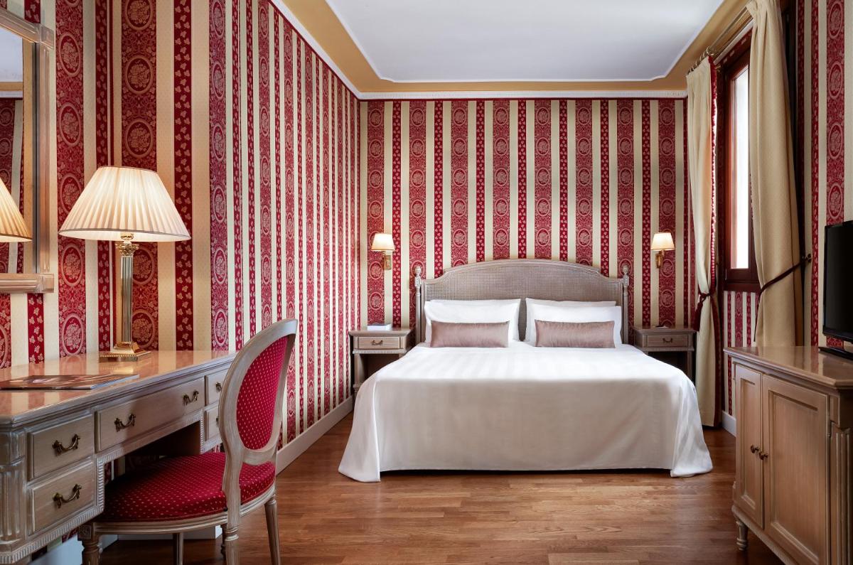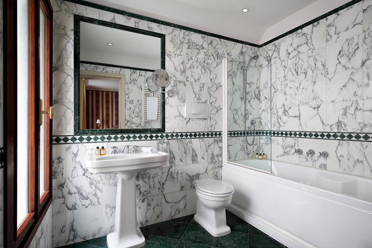 The rooms and suites are decorated with sumptuous elegance, recalling the 18th-century Venetian style. The interiors feature damask fabrics, refined antiques, fine marble, and Murano glass chandeliers. Many accommodations offer an unforgettable view of the Grand Canal. All rooms are equipped with luxury comforts, including modern marble bathrooms with a hydromassage tub, ensuring a stay dedicated to absolute relaxation.