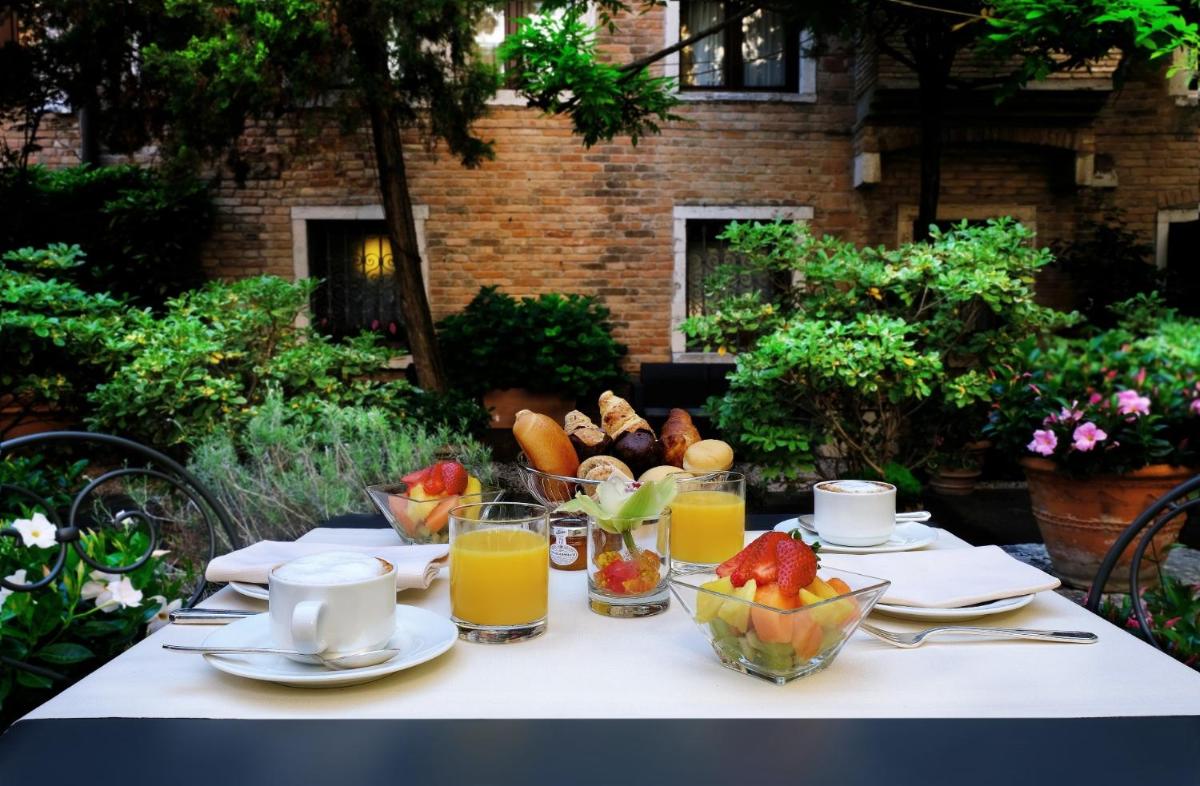 The rich and varied buffet breakfast is served in a room elegantly decorated with antique wood paneling. The hotel is just a few minutes’ walk from some of Venice’s main attractions, such as the La Fenice Theatre and Palazzo Grassi. Its proximity to the Sant’Angelo vaporetto stop further facilitates travel, but most of the wonders of San Marco, including the Basilica and the Doge’s Palace, are reachable with a pleasant walk.