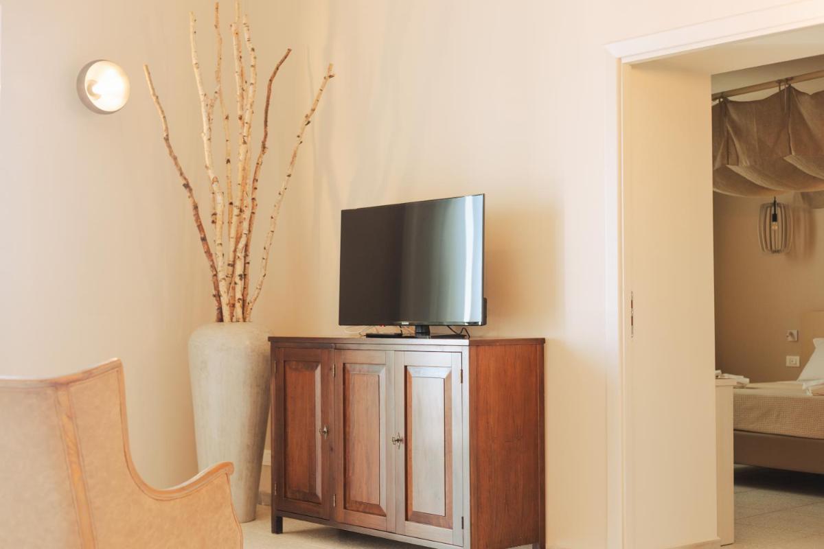 The 16 suites feature elegant décor, air conditioning, free Wi‑Fi, flat-screen TV, safe and private bathroom. Many rooms offer terraces or balconies with views of the city or nearby sea. The interior design blends exposed stone, classic furnishings and contemporary touches.
