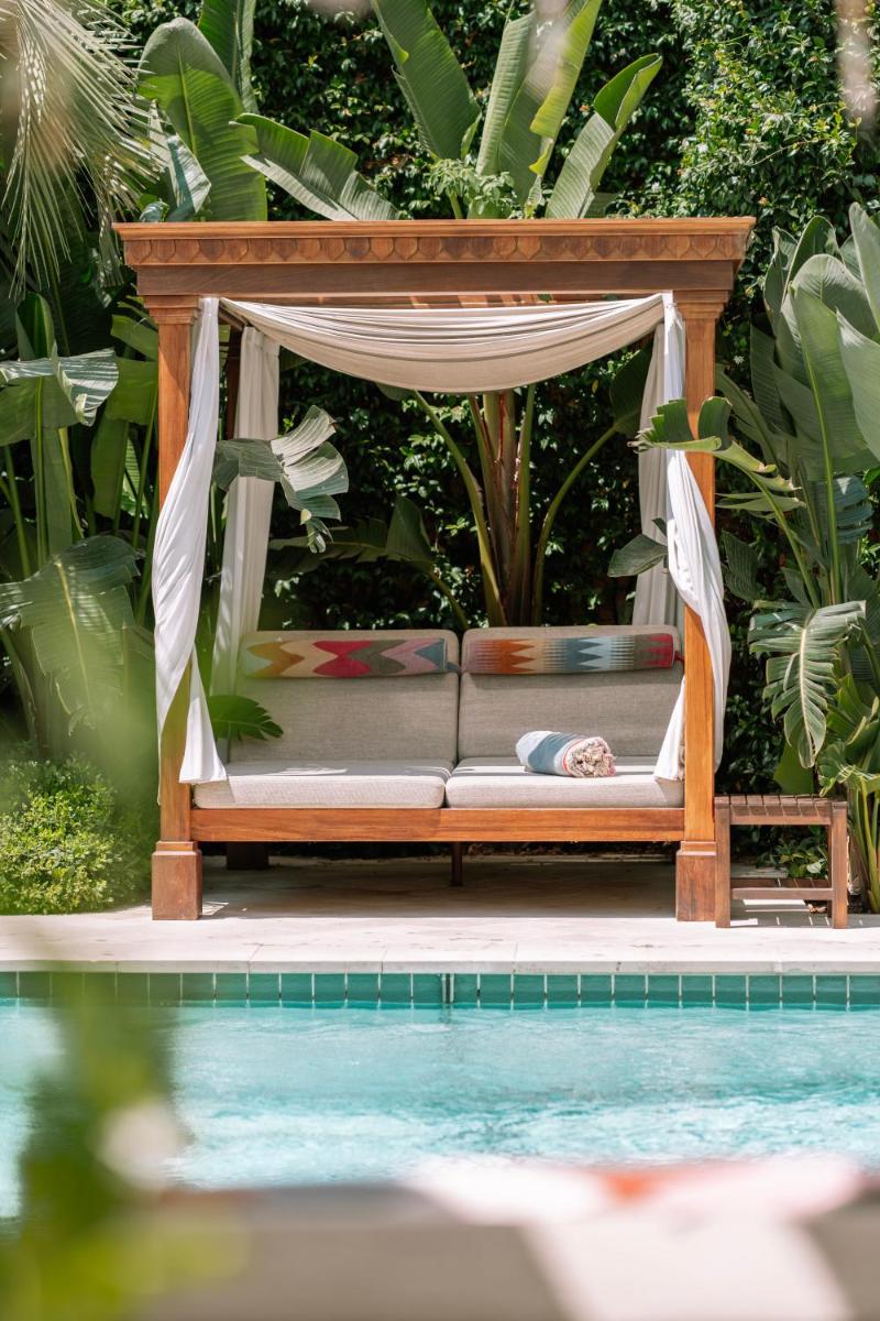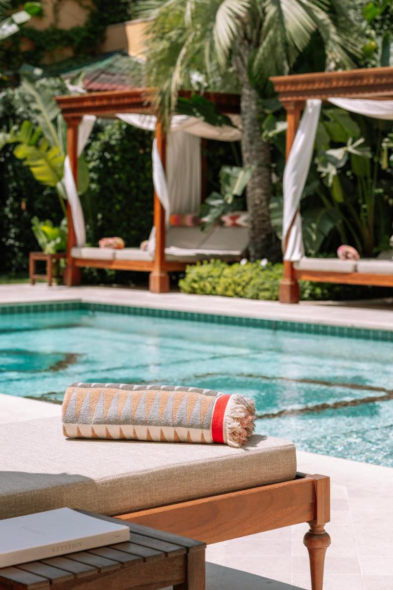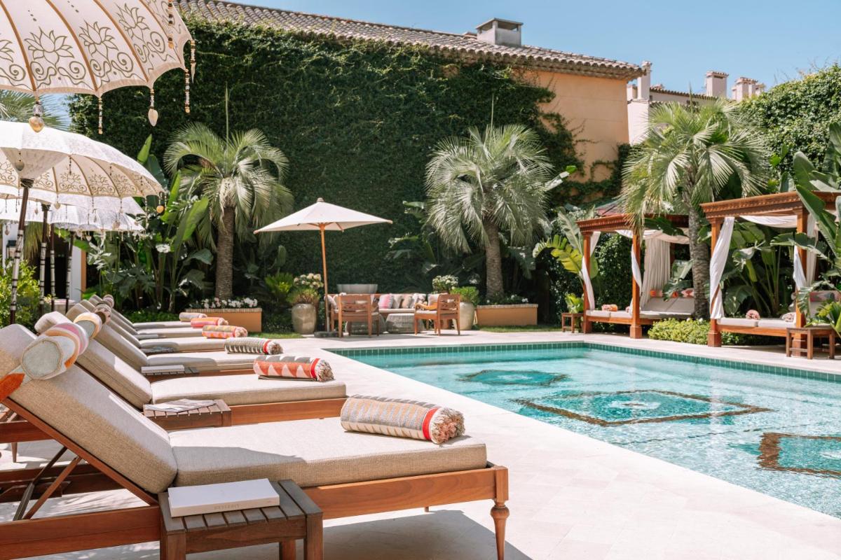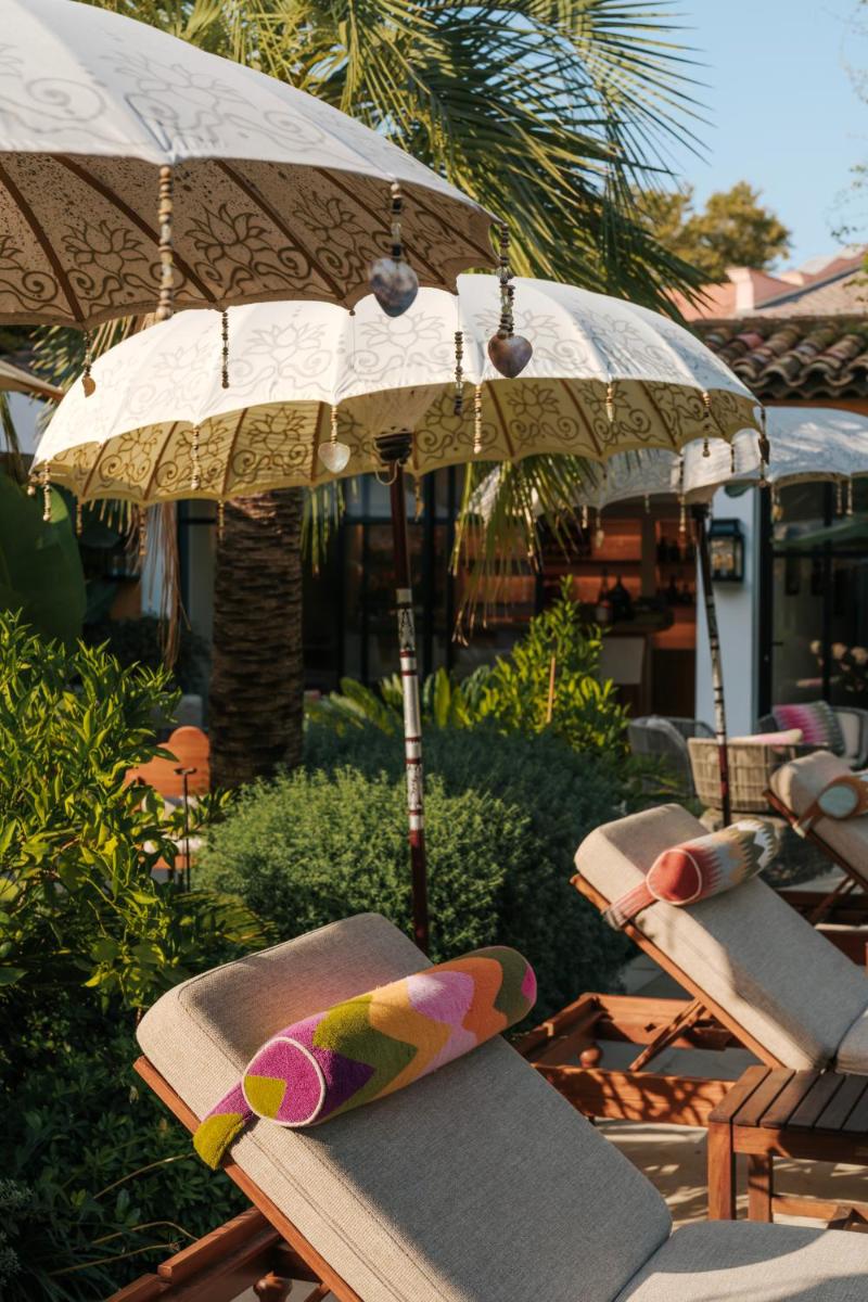 The hotel conceals a magnificent inner courtyard, a true secret garden, where the pool is located. This space is an oasis of coolness and tranquility, offering a luxurious retreat away from prying eyes, ideal for moments of relaxation after a day at the beach or in the town.