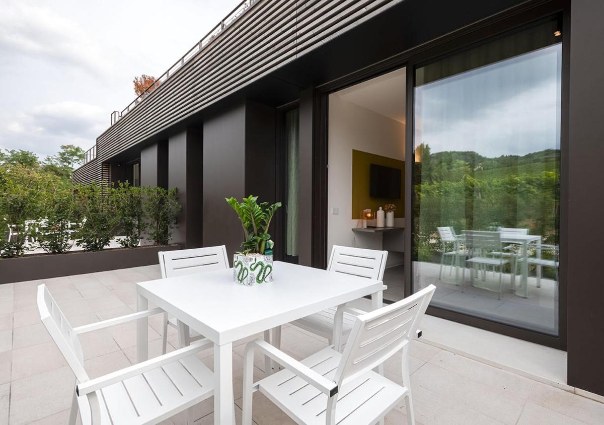 The accommodation offer consists of 9 Apartment Suites, modernly furnished and unique in style, featuring a comfortable living area and a practical, equipped kitchenette. The 6 ground-floor apartments have a private terrace and/or garden, while the 3 on the first floor are characterized by spacious areas with exposed beams. Some suites offer exclusive extras, such as lofts with a second bedroom or an outdoor hot tub on the terrace. All accommodations guarantee free Wi-Fi and all the comforts for long stays.