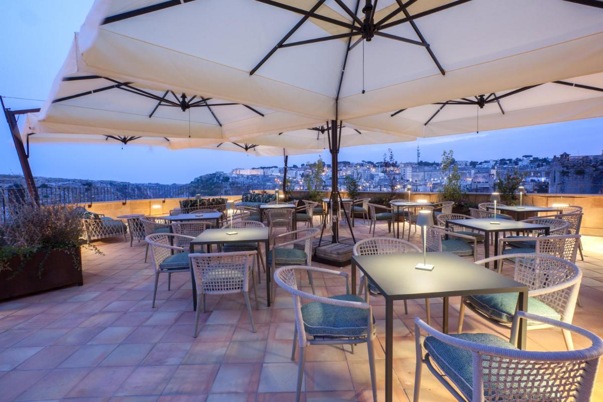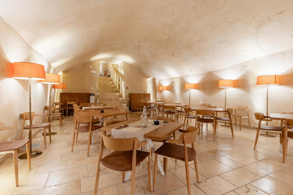 The culinary offer celebrates the authentic flavors of Lucanian tradition, reinterpreted with elegance. The Quarry Restaurant offers refined dishes using local, zero-mile ingredients. The hotel boasts two unique locations: the Quarry Lounge Terrace, a panoramic terrace ideal for breakfast, aperitifs, and dinner with views of the Sassi, and the "Garden In" Restaurant, an evocative space entirely carved into the rock and surrounded by greenery. The bar completes the offer for crafted cocktails and relaxing moments.