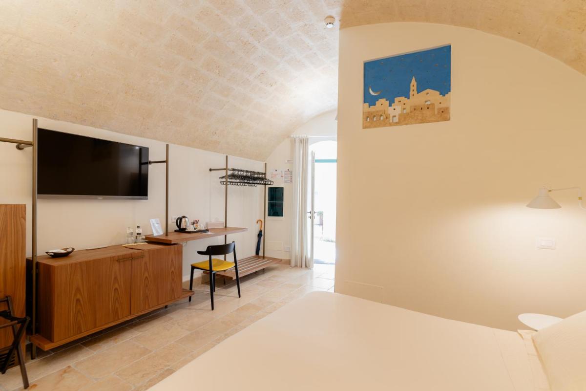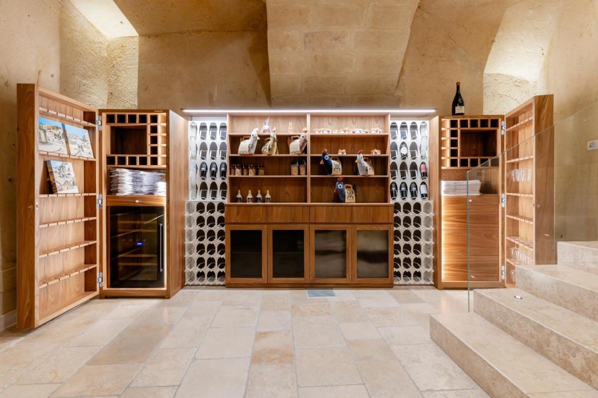 The resort features a limited number of luxurious rooms and suites (about 12), created from ancient caves. Each accommodation is a tribute to design, enhanced by stone floors and fine details. Amenities include Egyptian cotton linens, high-quality mattresses, minibar, and Free Wi-Fi. Higher-category suites, such as the Junior Suite Pool and Suite King Pool, offer exclusive luxury with a private wellness area featuring a private hydromassage pool and emotional showers.