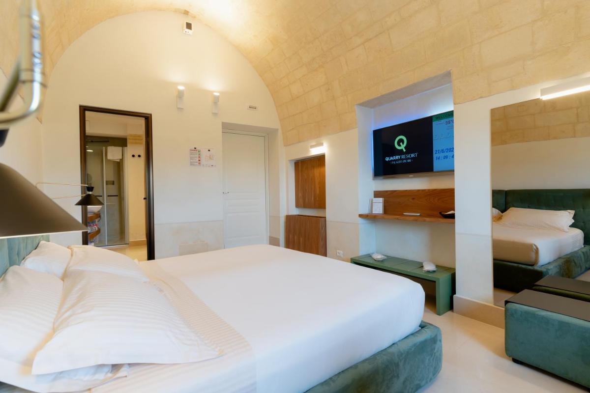 The BV Quarry Matera (formerly Quarry Resort) is an exclusive 5-star luxury hotel, located in the heart of the Civita, the highest and most panoramic part of the Sassi di Matera, a UNESCO World Heritage Site. Housed in the historic Palazzo Zicari, dating back to 1500 AD and featuring spaces carved from ancient caves, the resort blends the millennia-old architecture of tuff stone with a contemporary and refined design. Its privileged position offers breathtaking views of the Sasso Caveoso and the Murgia Materana Park.