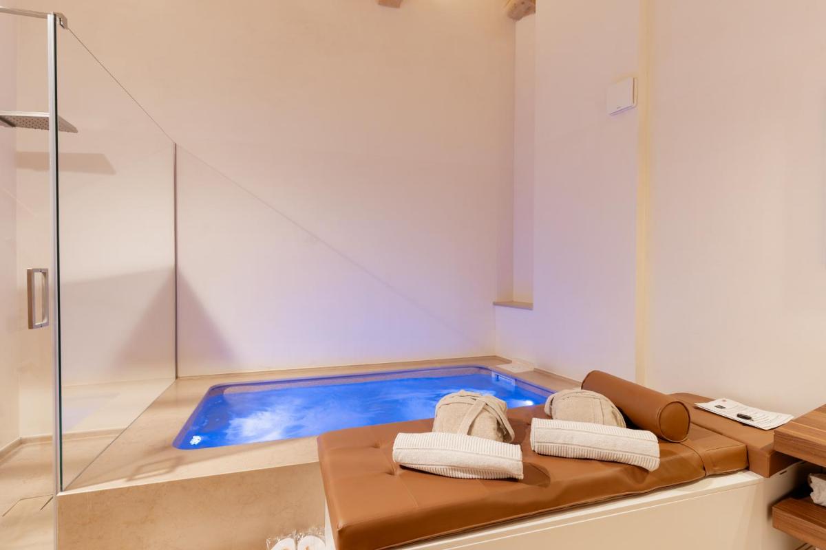 BV Quarry Matera offers a complete stay experience. Guests can enjoy a wellness area with an indoor pool and hot tub, perfect for relaxation. Services include complimentary continental breakfast (served in the room or with a view), 24-hour reception, concierge service, and tour support. Romantic packages and bicycle rental are also available for exploring the area.