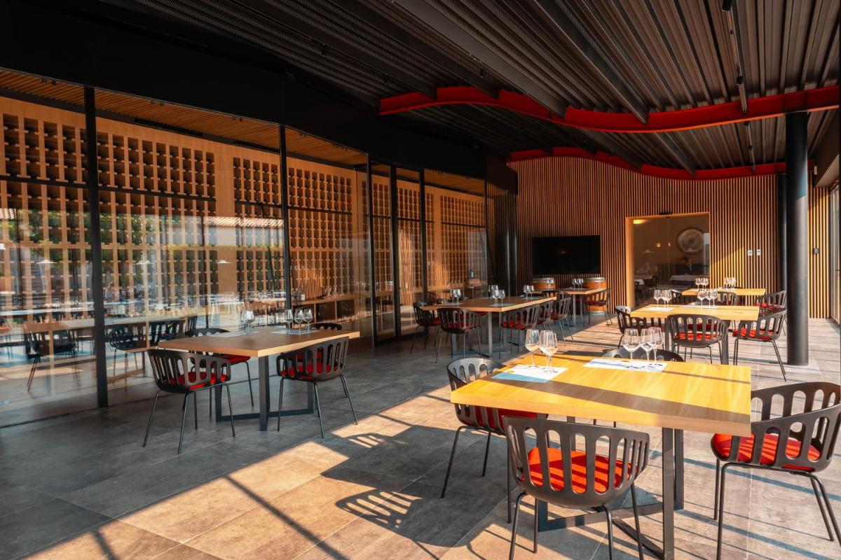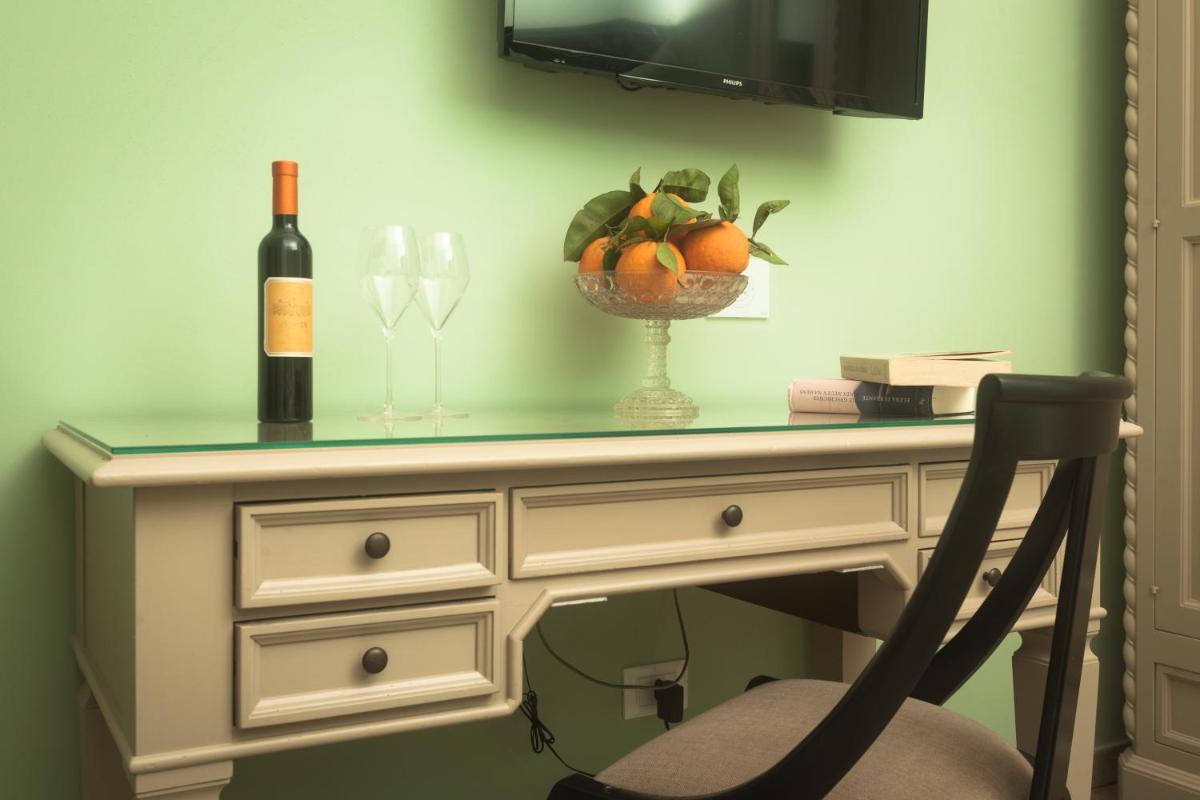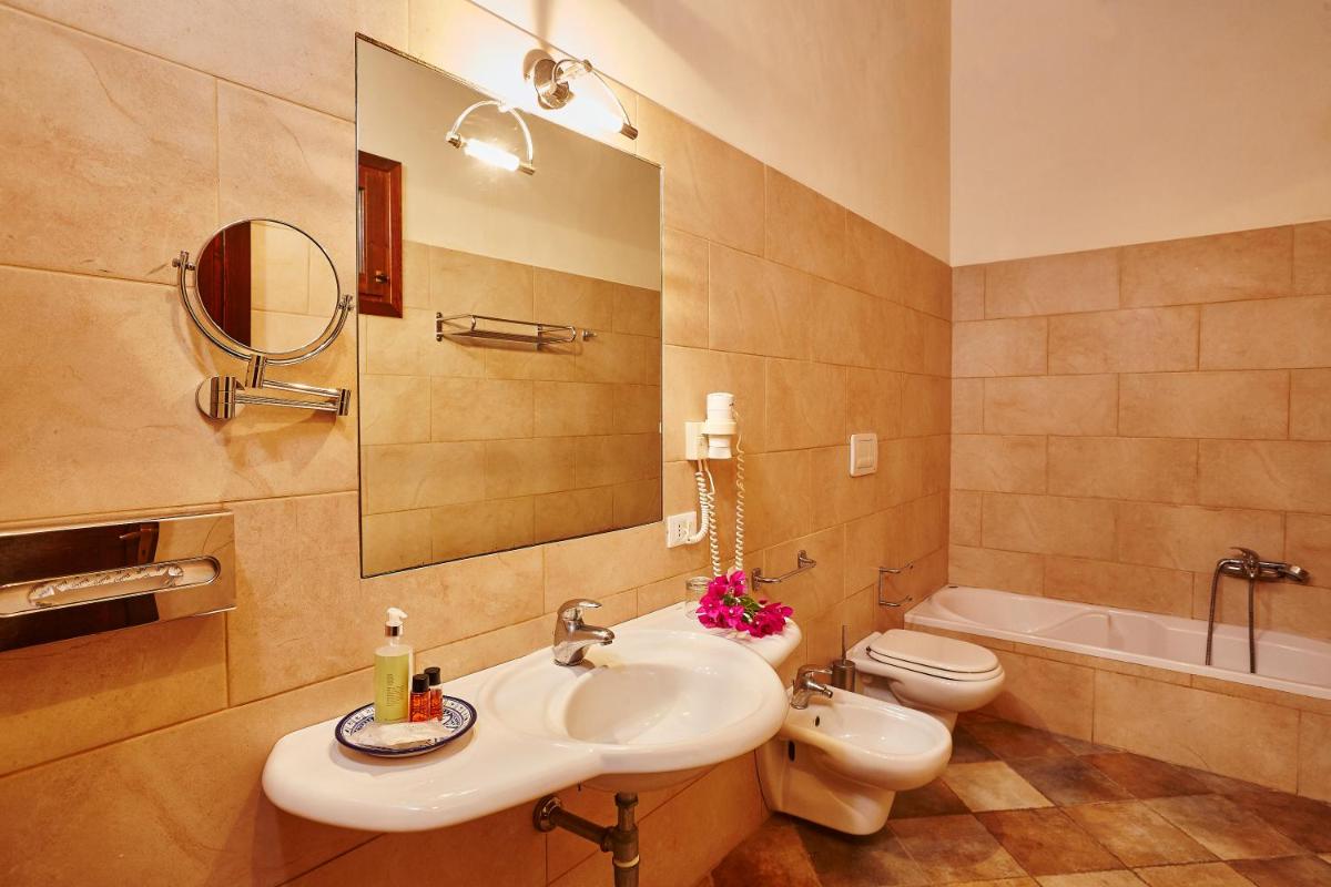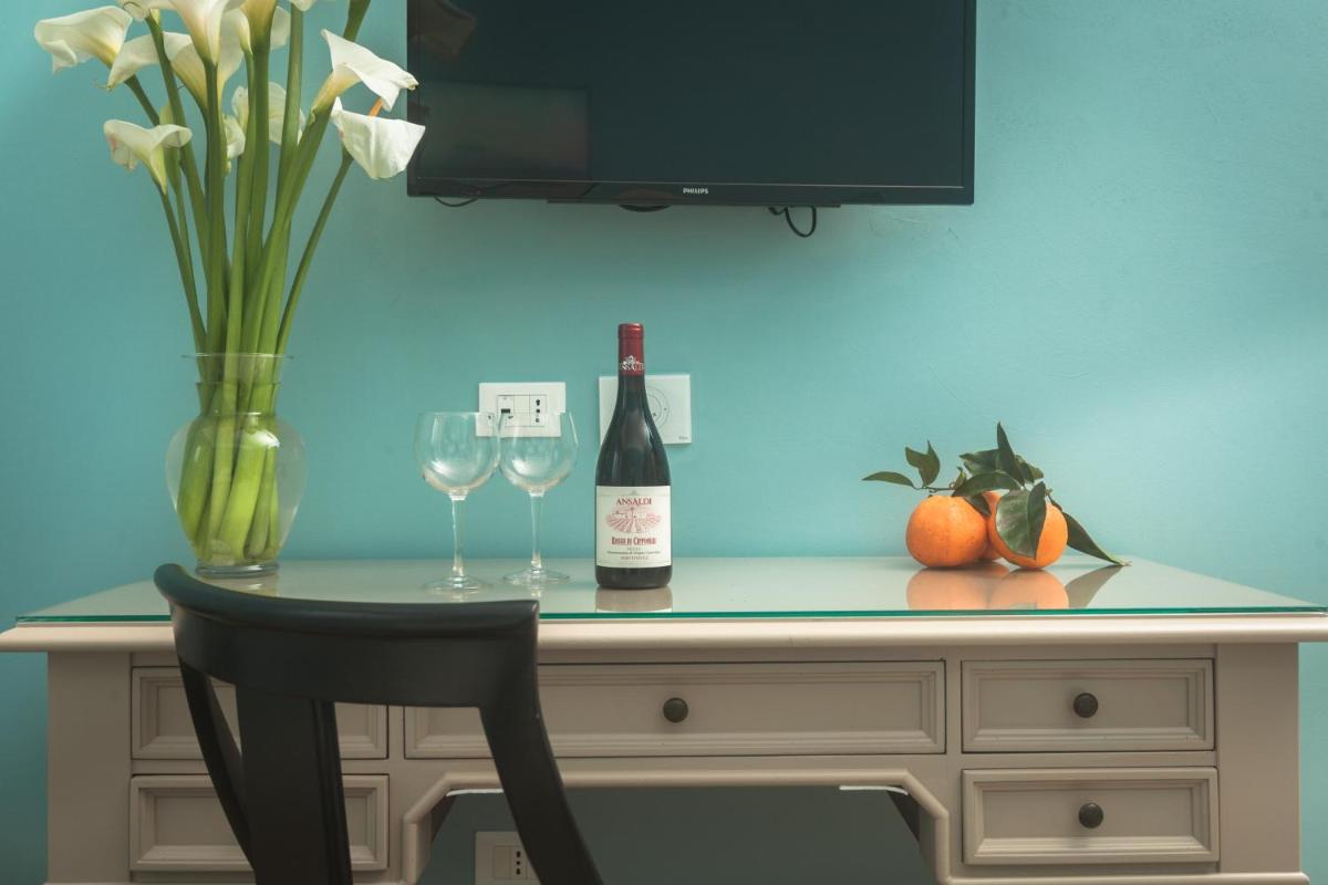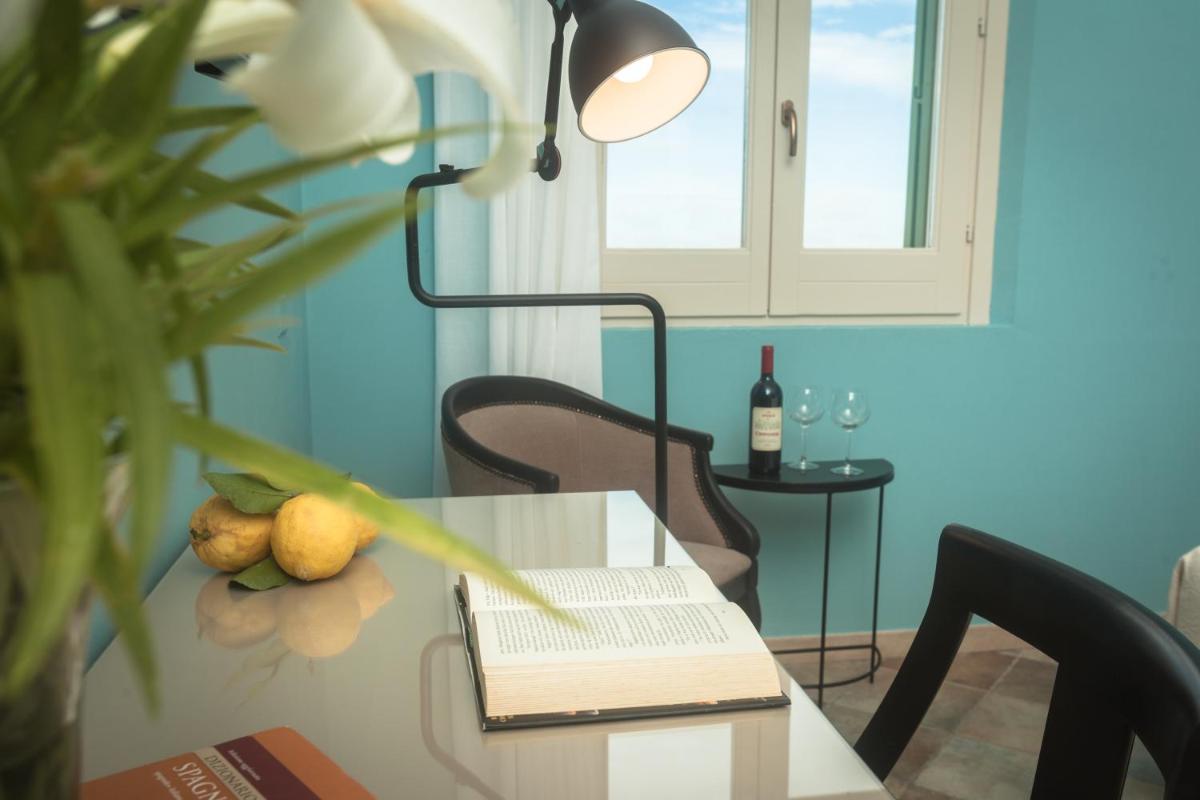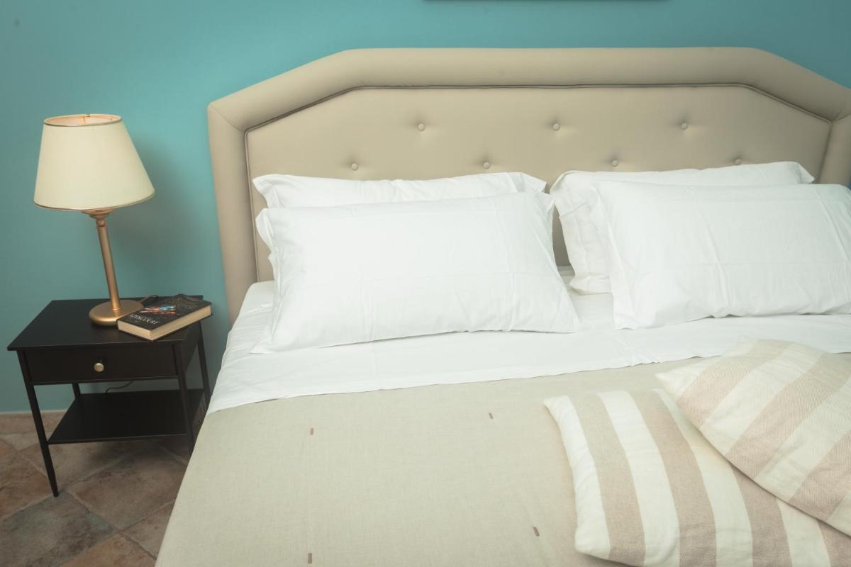 Bright spaces with wooden furnishings, terracotta floors and crafted details. Multiple categories—from classic to suites—many with vineyard or sea views. Amenities include A/C, Wi‑Fi, TV, minibar, safe and private bathroom with courtesy set.