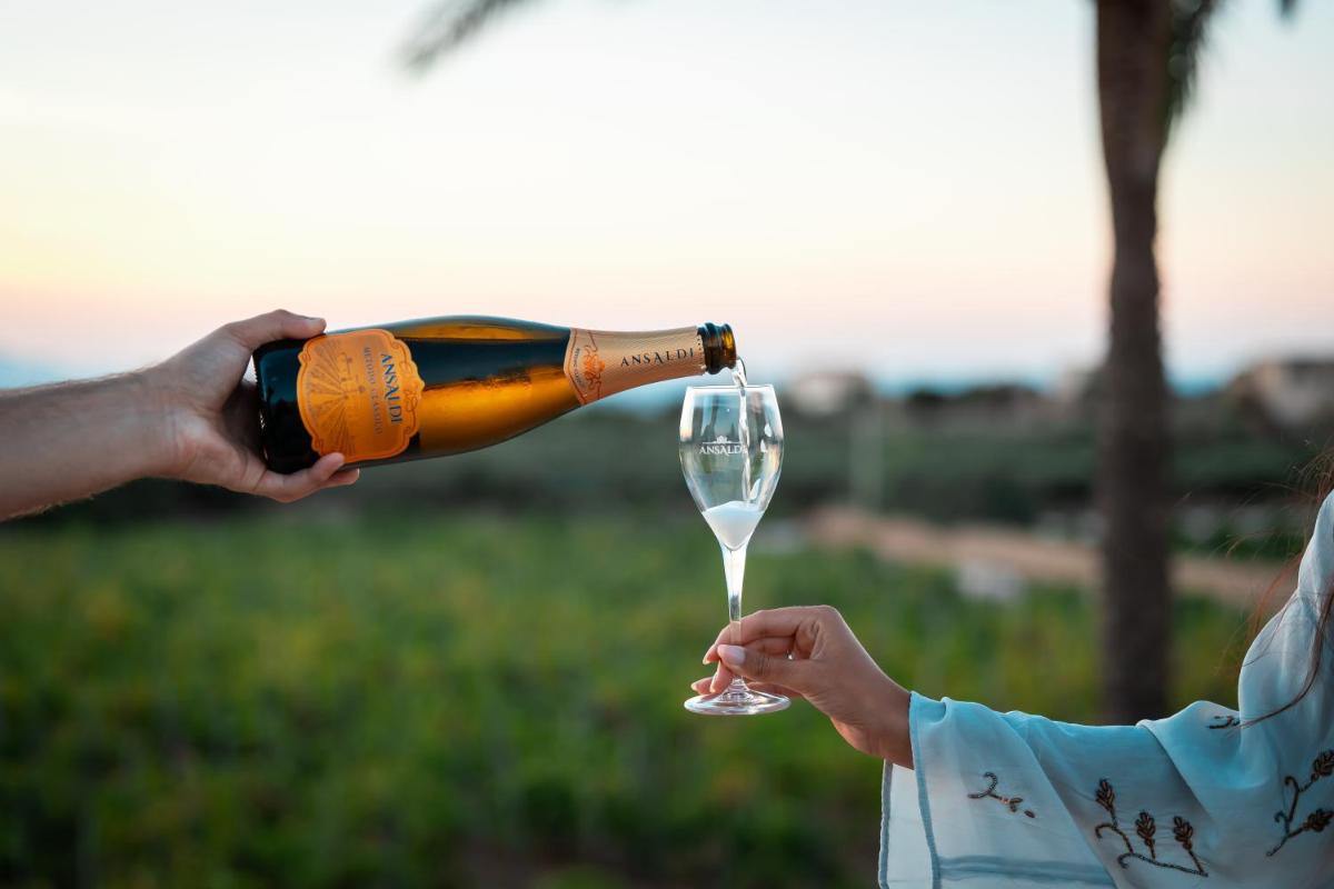 The resort is the heart of a working winery: guided tours among the vines and ageing cellars, tastings of Grillo, Nero d’Avola and Marsala, verticals and food‑pairing sessions by reservation. Sunset visits and vineyard picnics available.