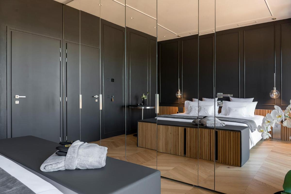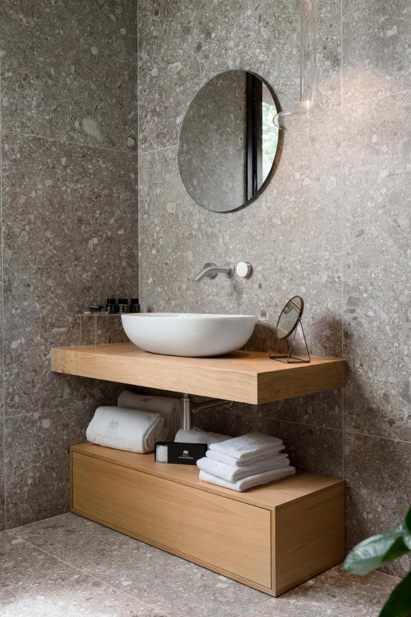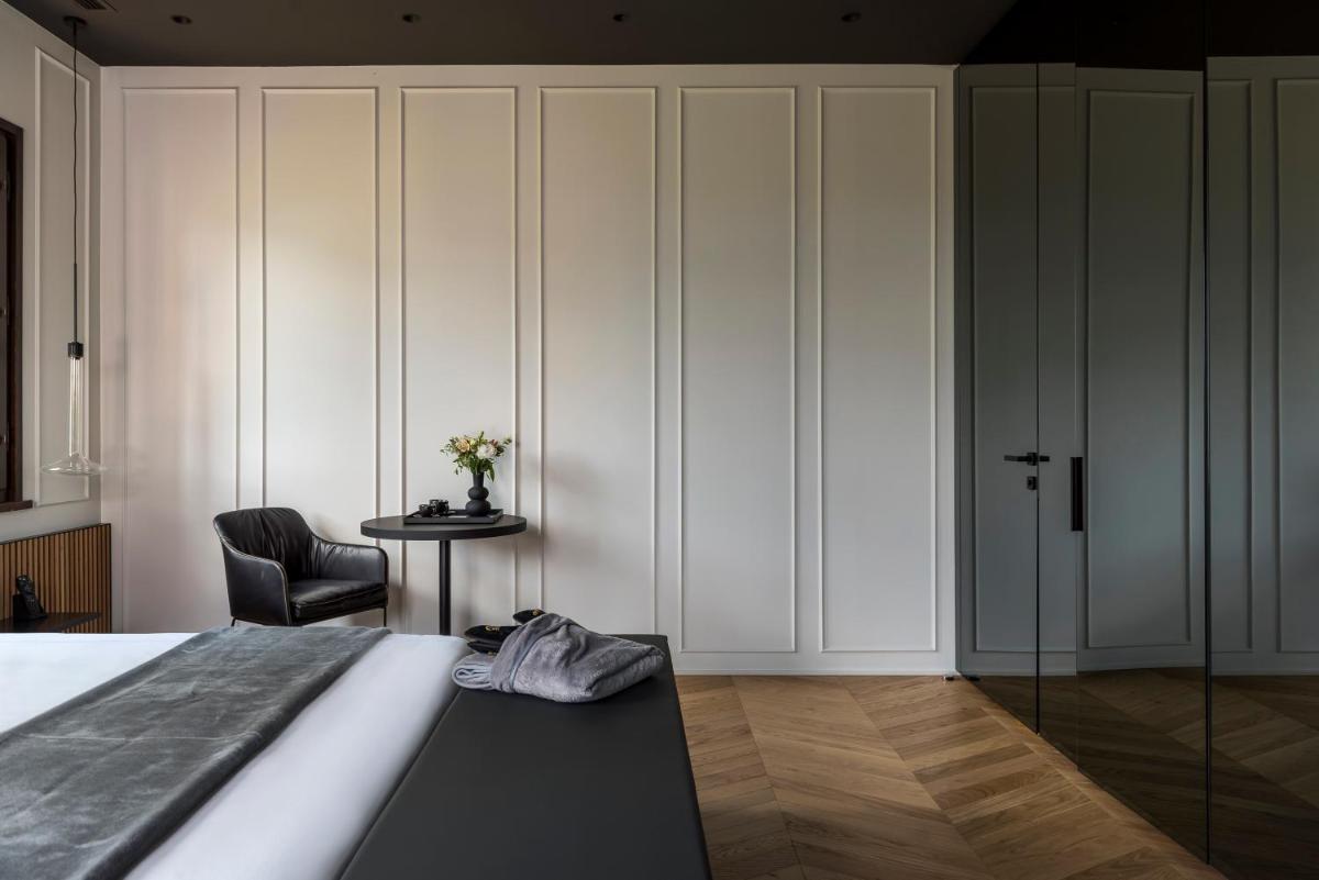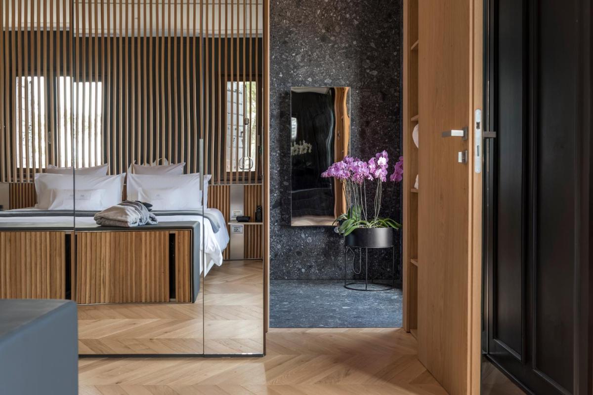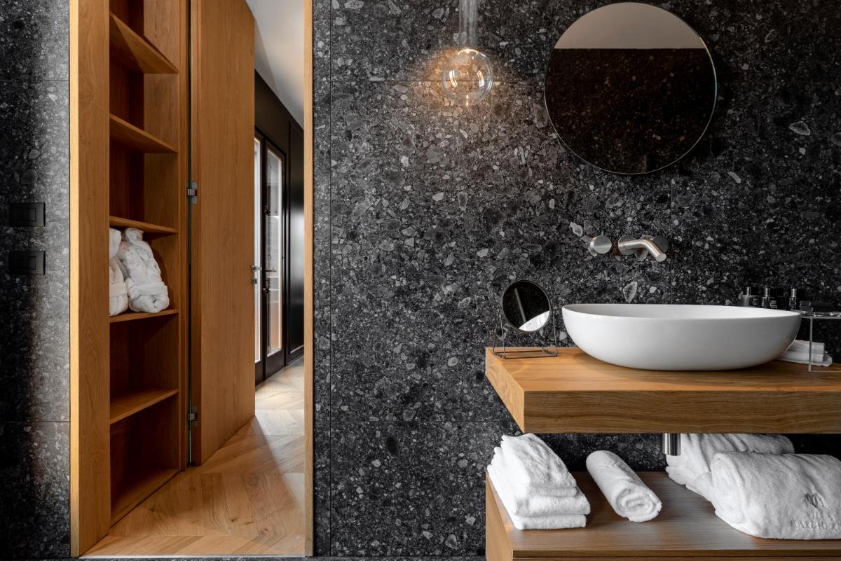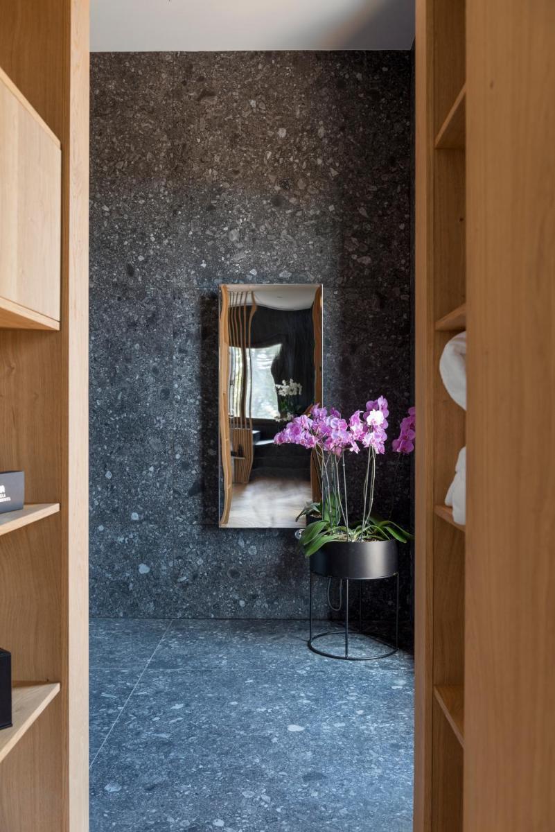 The rooms and suites (such as Zafferano, Aneto, and Timo & Malva) are characterized by refined style, design details, and exclusive amenities. The structure is ideal for those seeking absolute relaxation: the large park hosts a spectacular seasonal 80 sqm infinity pool with a view. Some of the most prestigious suites also offer a private Jacuzzi overlooking the charming hilly panorama.