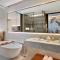 The interiors are a tribute to classic yet contemporary elegance, featuring shimmering marble, sumptuous furnishings, and a curated collection of modern artworks that enhance the common areas and rooms. The rooms and suites are spacious, bright, and equipped with floor-to-ceiling windows to maximize the breathtaking views.