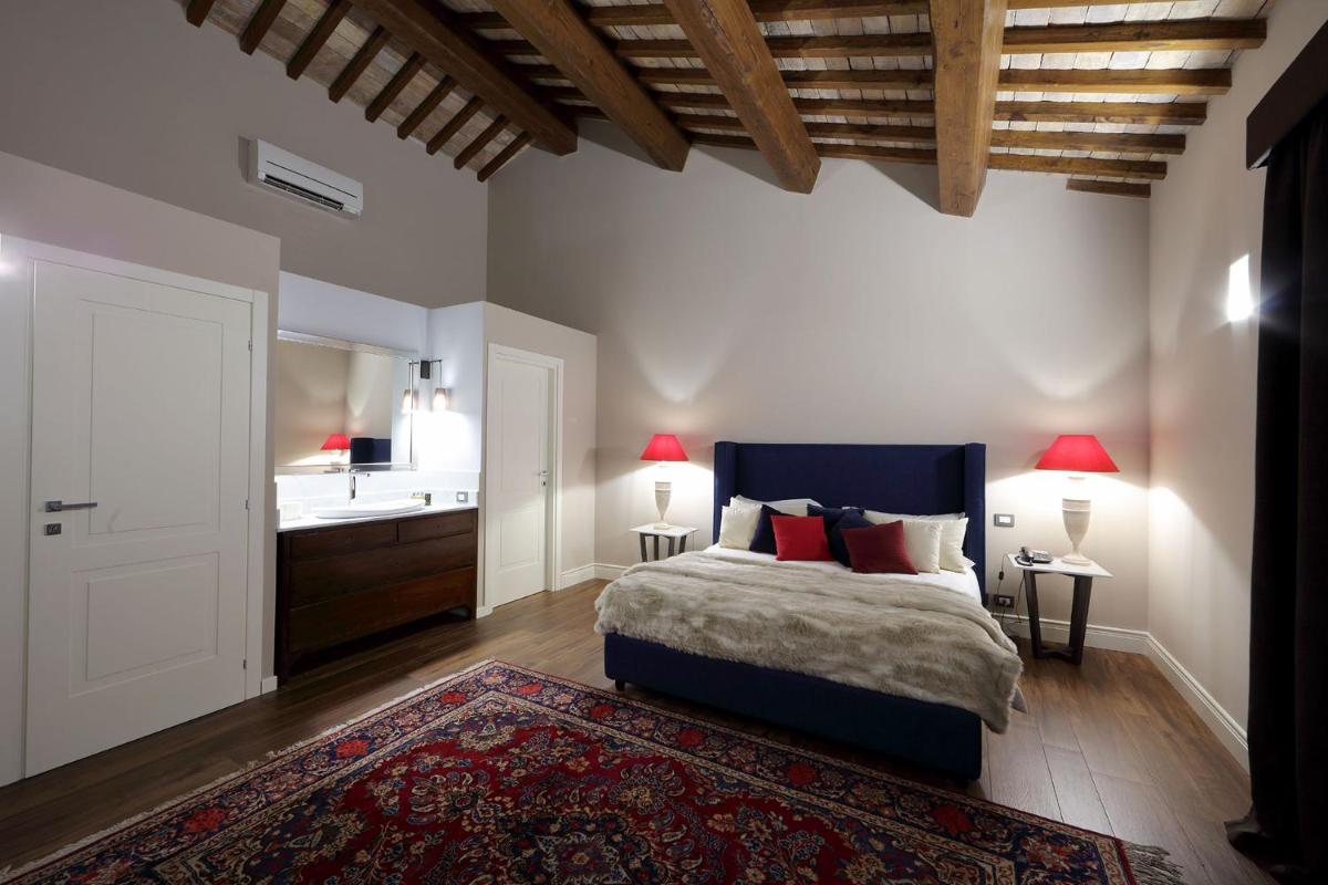 The hotel features only 6 exclusive rooms and suites (such as Camera dei Borgia, Suite di Lucrezia) furnished with a personalized style and equipped with every comfort: air conditioning, underfloor heating, king size beds, flat-screen TV, and minibar (often complimentary). The bathrooms are elegant, and the Queen Room with Spa Bath offers an experience of pure wellness. Many rooms enjoy balconies or terraces with views of the city or the tranquil internal garden.