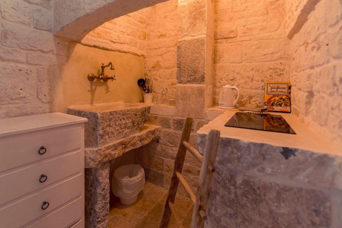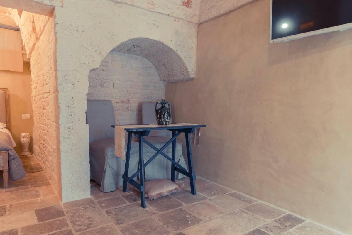 The 8 suites, each housed in a trullo (such as Trullo Smeriglio and Trullo Astore), are furnished with refined design and offer an intimate and romantic setting. Private luxury is guaranteed by the presence, in many units, of private indoor or outdoor heated hot tubs, often carved into the rock. Some suites also offer a private Turkish Bath, creating a true personal mini-SPA.