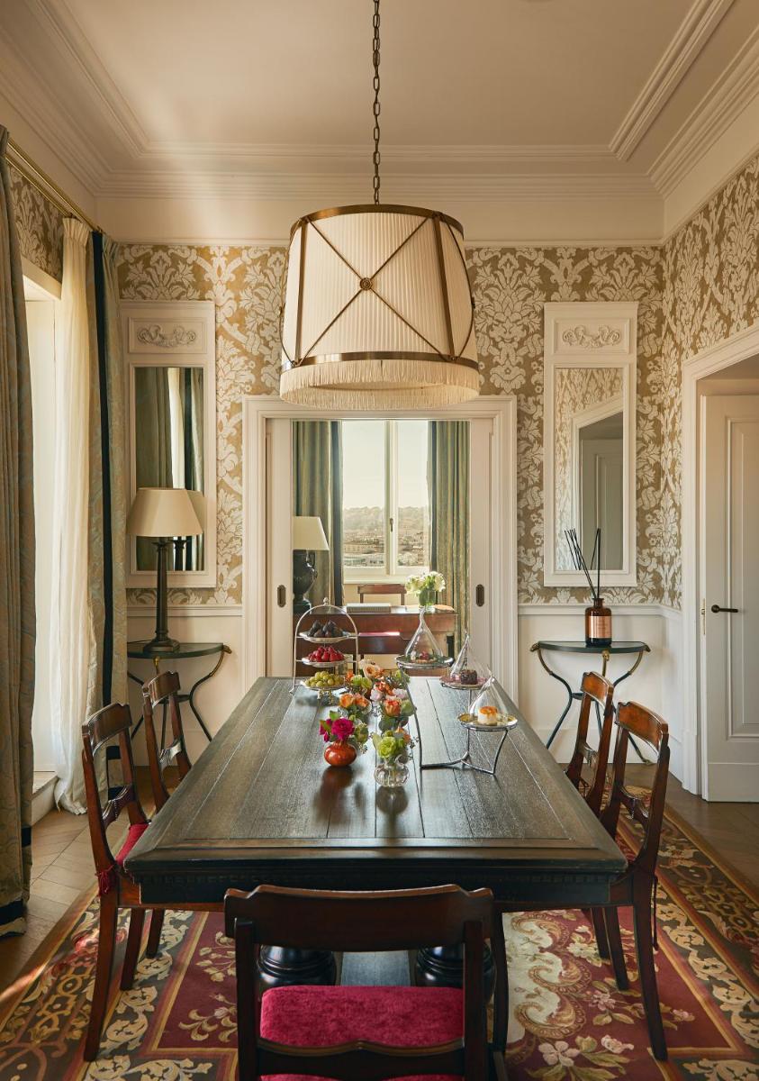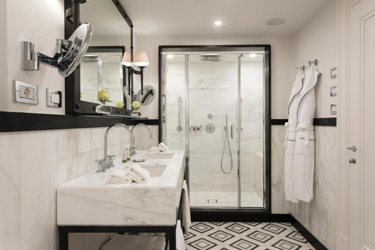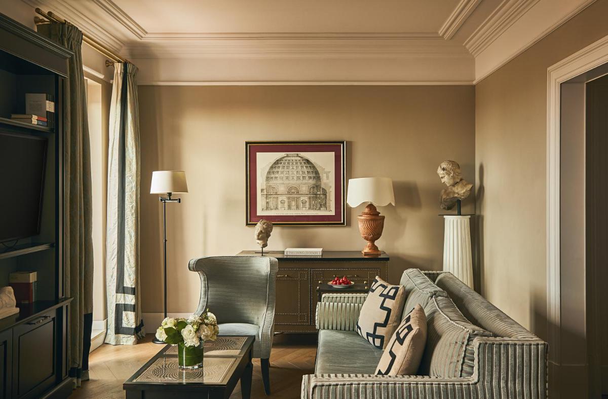 The 104 elegant rooms and suites are air-conditioned and reflect the luxurious style of the property with a mix of contemporary design and antique touches. Many luxury suites boast spacious private terraces with spectacular views, including the sumptuous Suite De La Ville. The hotel welcomes families with the dedicated program "Rocco Forte Kids" for children and teenagers. Additional services: Free Wi-Fi, concierge service, room service, and valet parking availability (for a fee).