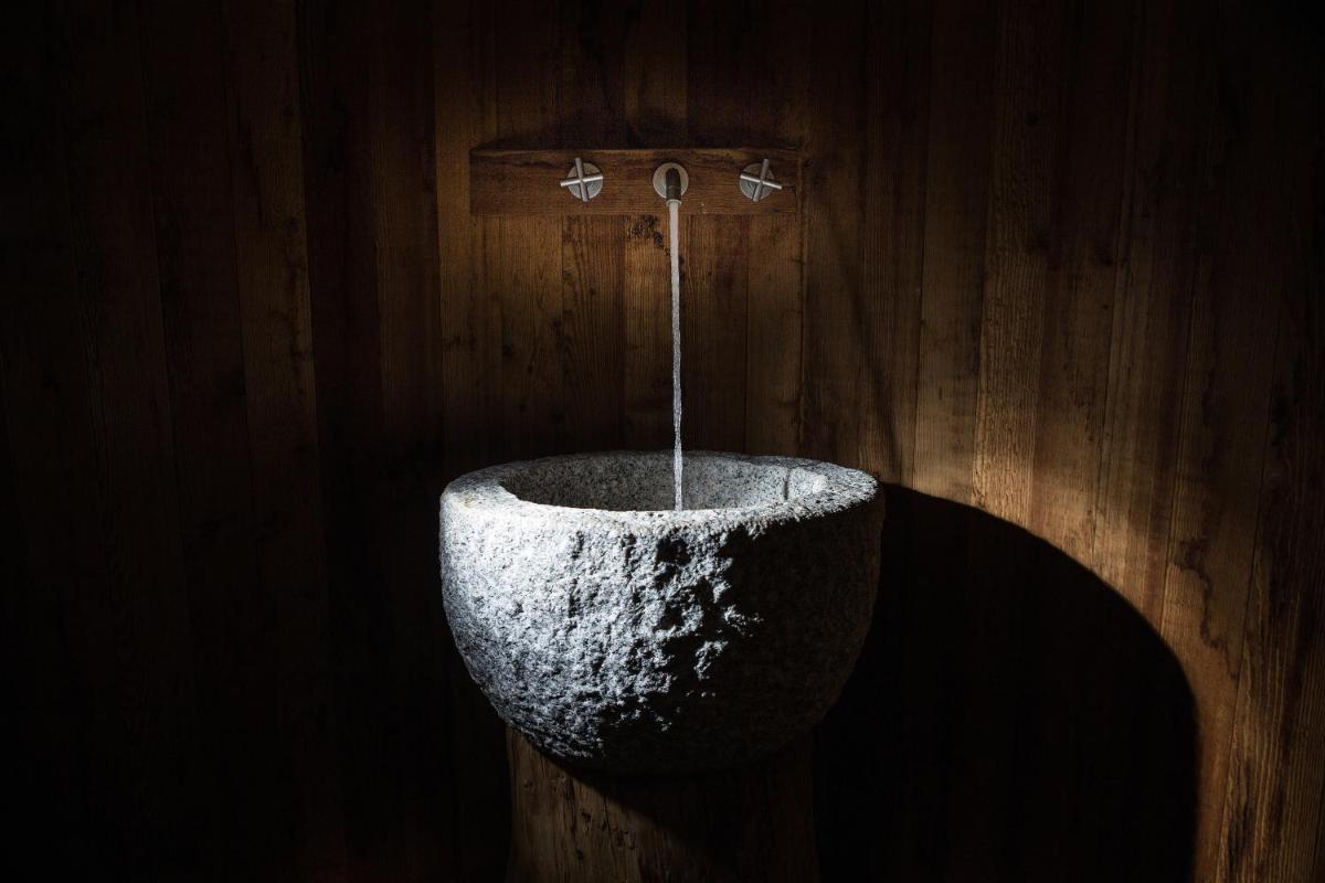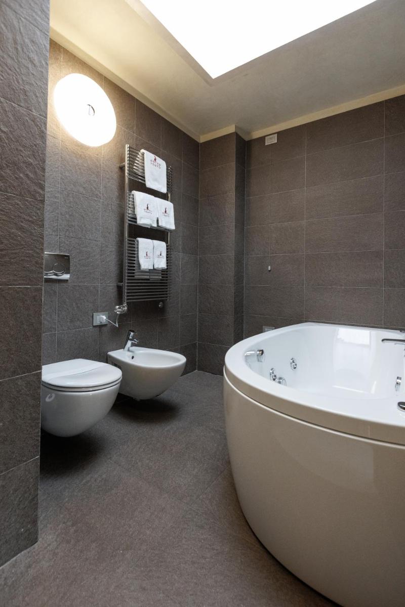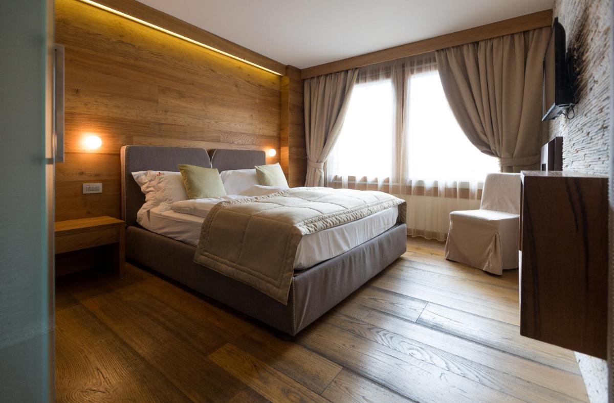 The hotel exclusively offers luxurious Suites (Deluxe, Luxury, Exclusive), all characterized by spacious areas, careful furnishings, and parquet floors. Most suites feature a private Balcony or Patio with valley or mountain views. Amenities include Air Conditioning, complimentary minibar, satellite TV, and Free Wi-Fi. Higher-category suites may include a private Hot Tub (Jacuzzi) in the bathroom.