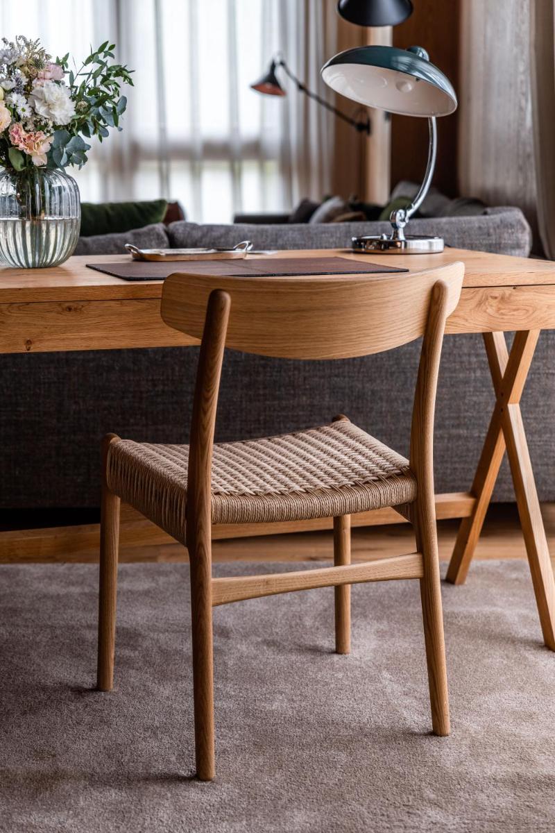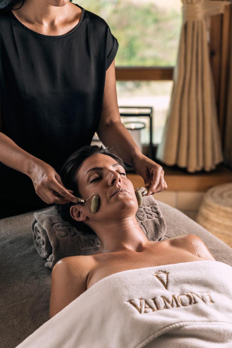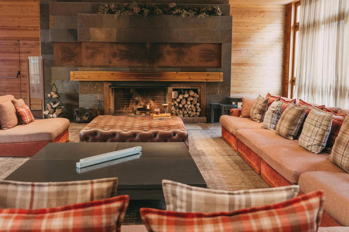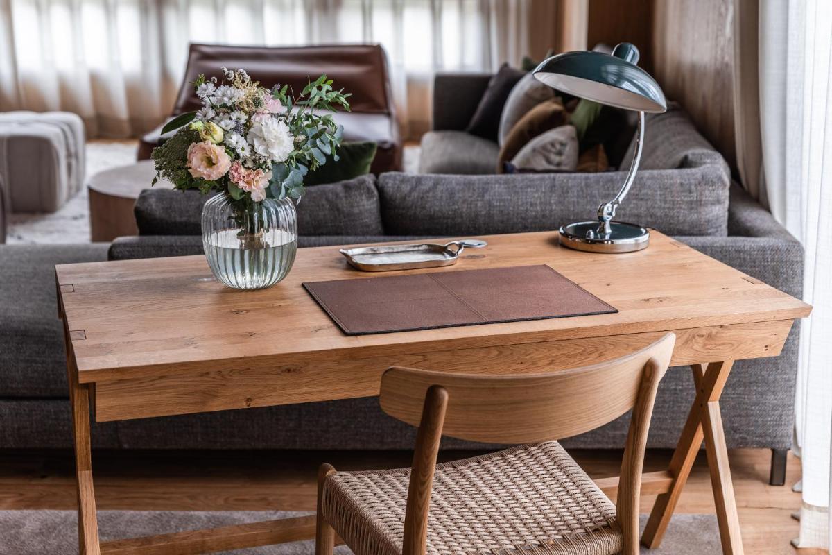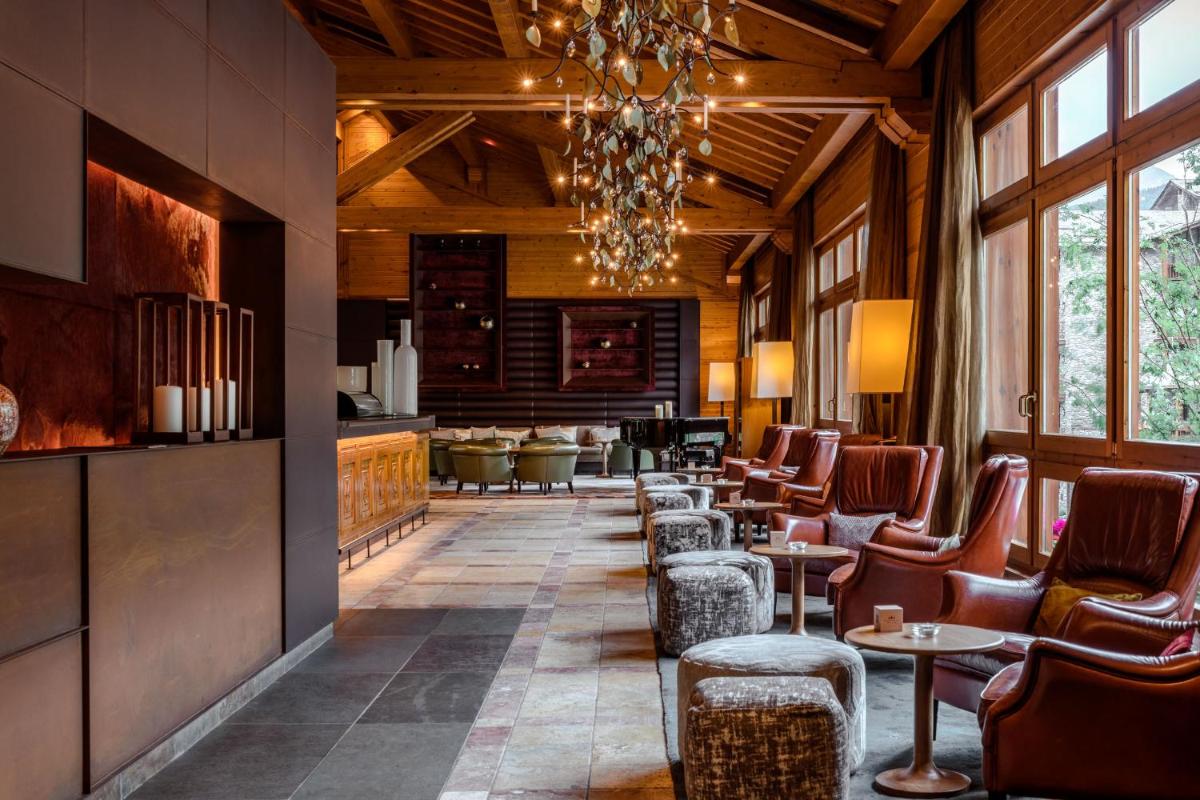 The interiors are a masterpiece of mountain design, characterized by the abundant use of stone and wood, creating a warm and sophisticated atmosphere. The suites are luxuriously furnished, many featuring a fireplace and private terrace with spectacular views of the snow-covered mountains or summer landscapes.