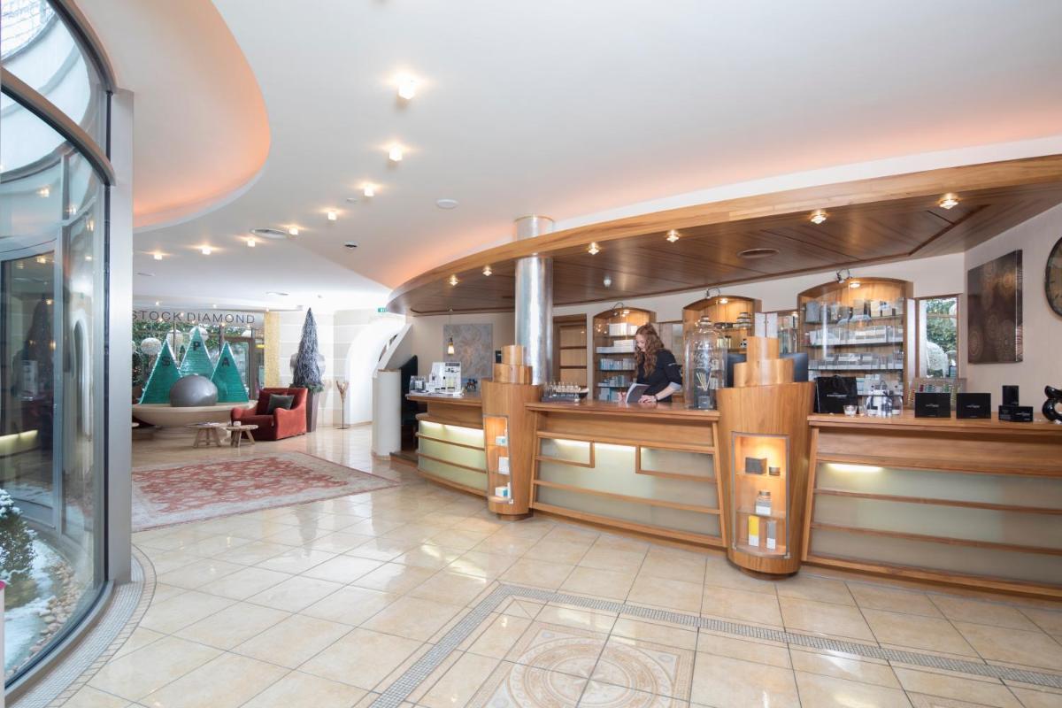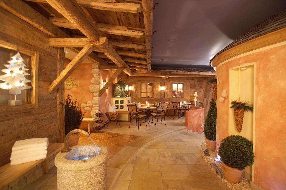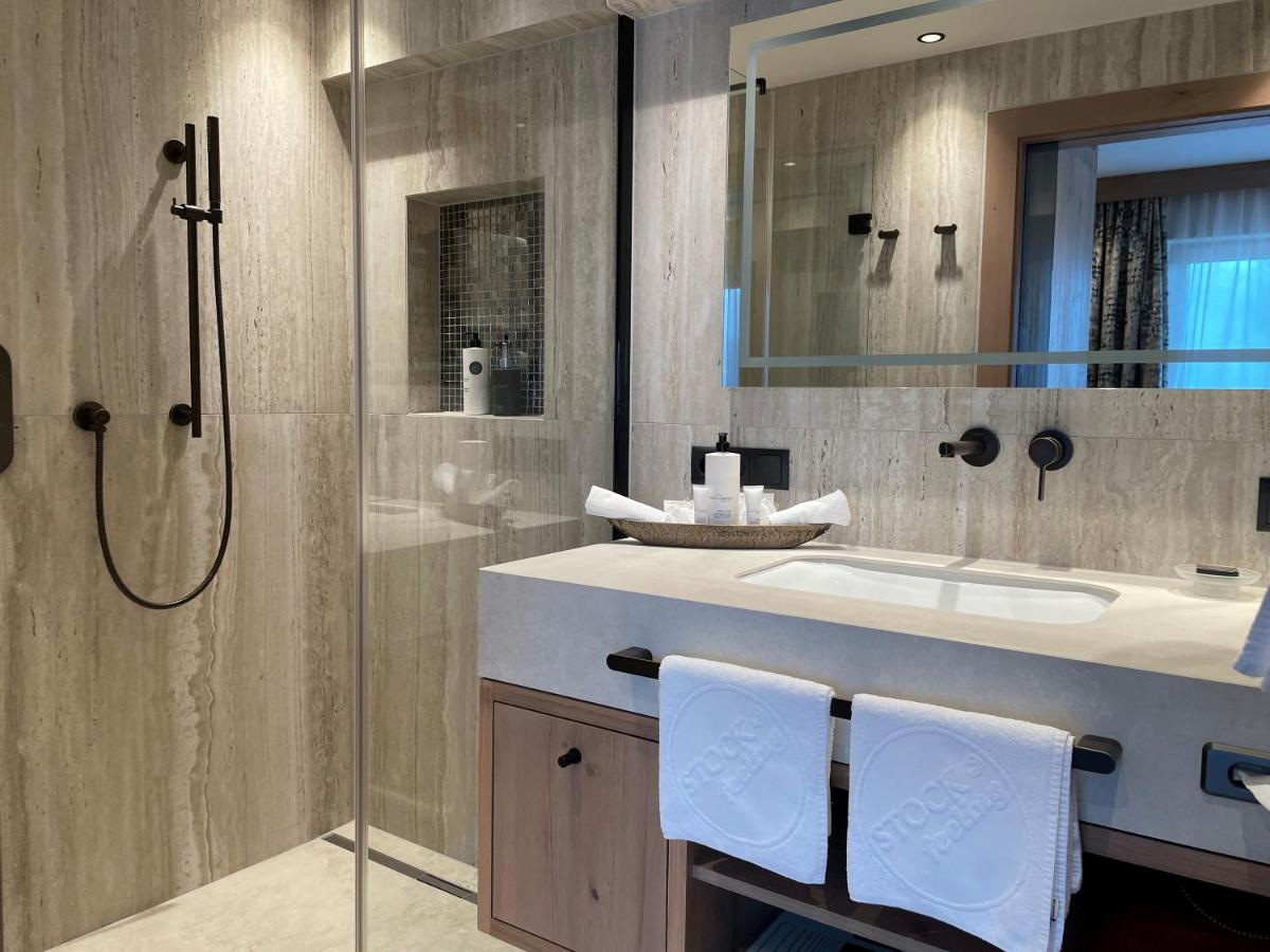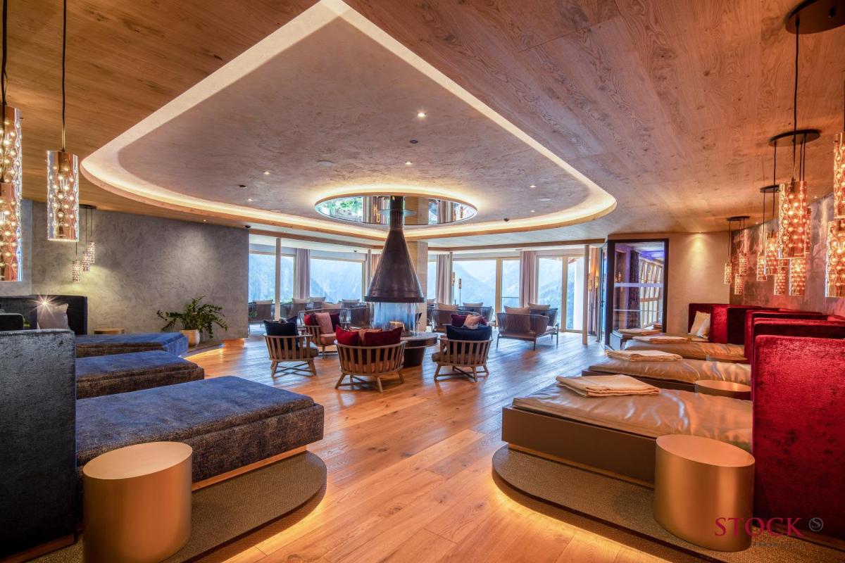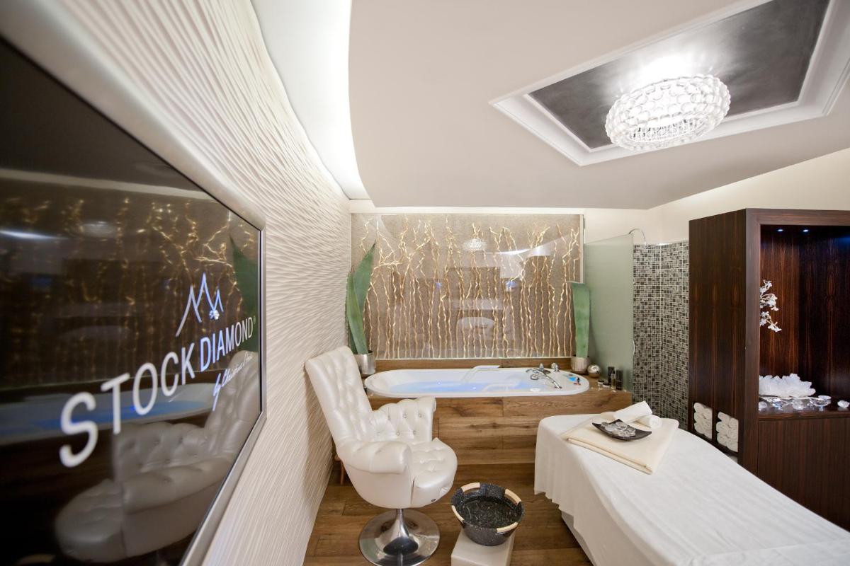 The heart of the resort is the spectacular Stock Diamond Spa, spanning over 5,000 m². It offers an unparalleled wellness experience with 11 different saunas, including the 'Bergkristall' (rock crystal) sauna, several heated pools, including a rooftop infinity pool with panoramic views of the Alps, and an indoor sports pool. The atmosphere is one of pure Alpine luxury and relaxation.