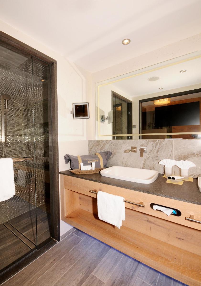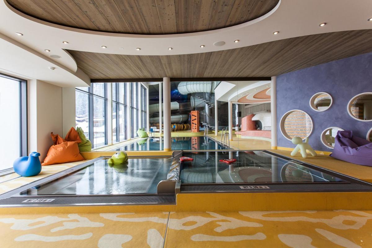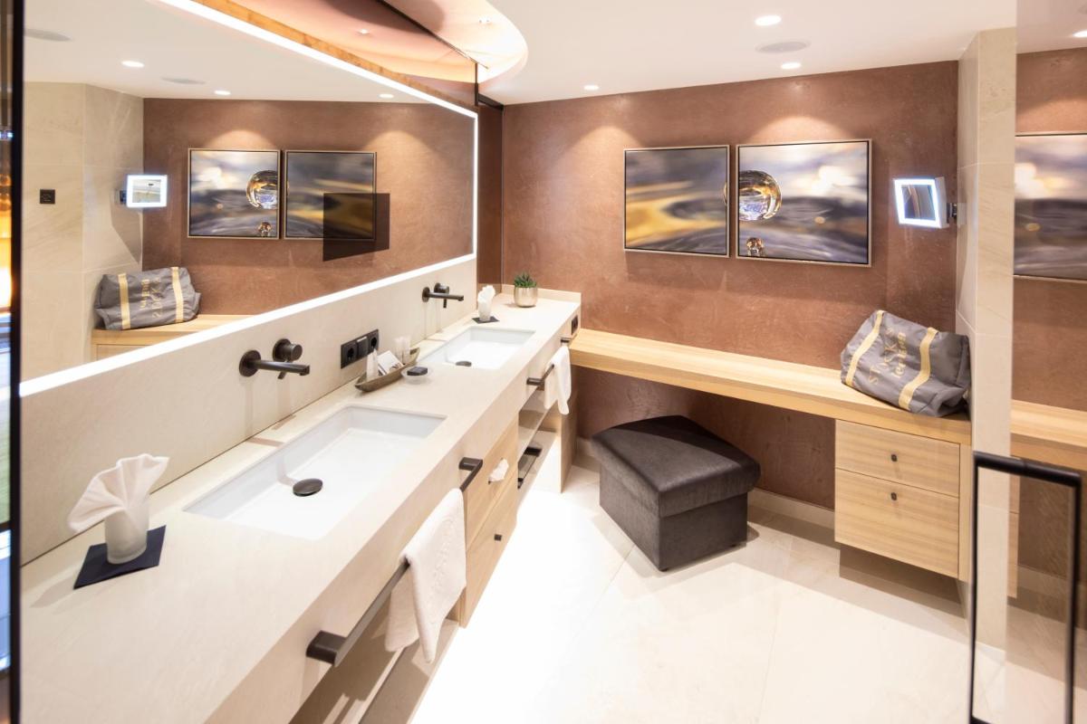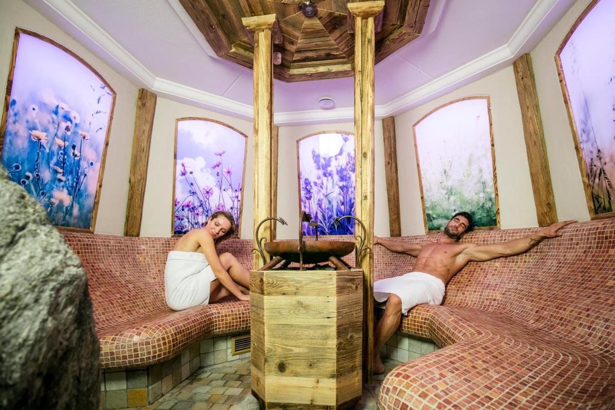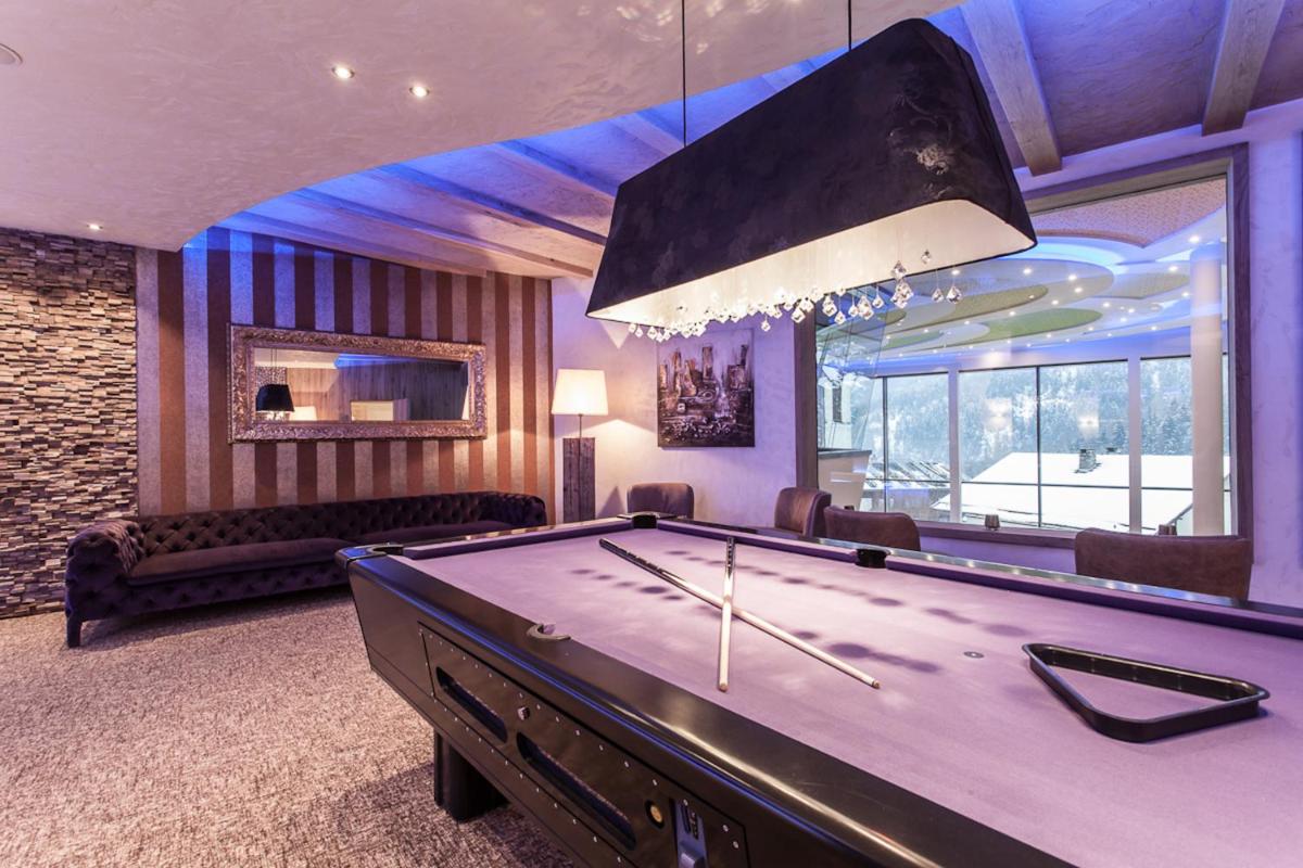 The heart of the resort is the spectacular Stock Diamond Spa, spanning over 5,000 m². It offers an unparalleled wellness experience with 11 different saunas, including the 'Bergkristall' (rock crystal) sauna, several heated pools, including a rooftop infinity pool with panoramic views of the Alps, and an indoor sports pool. The atmosphere is one of pure Alpine luxury and relaxation.