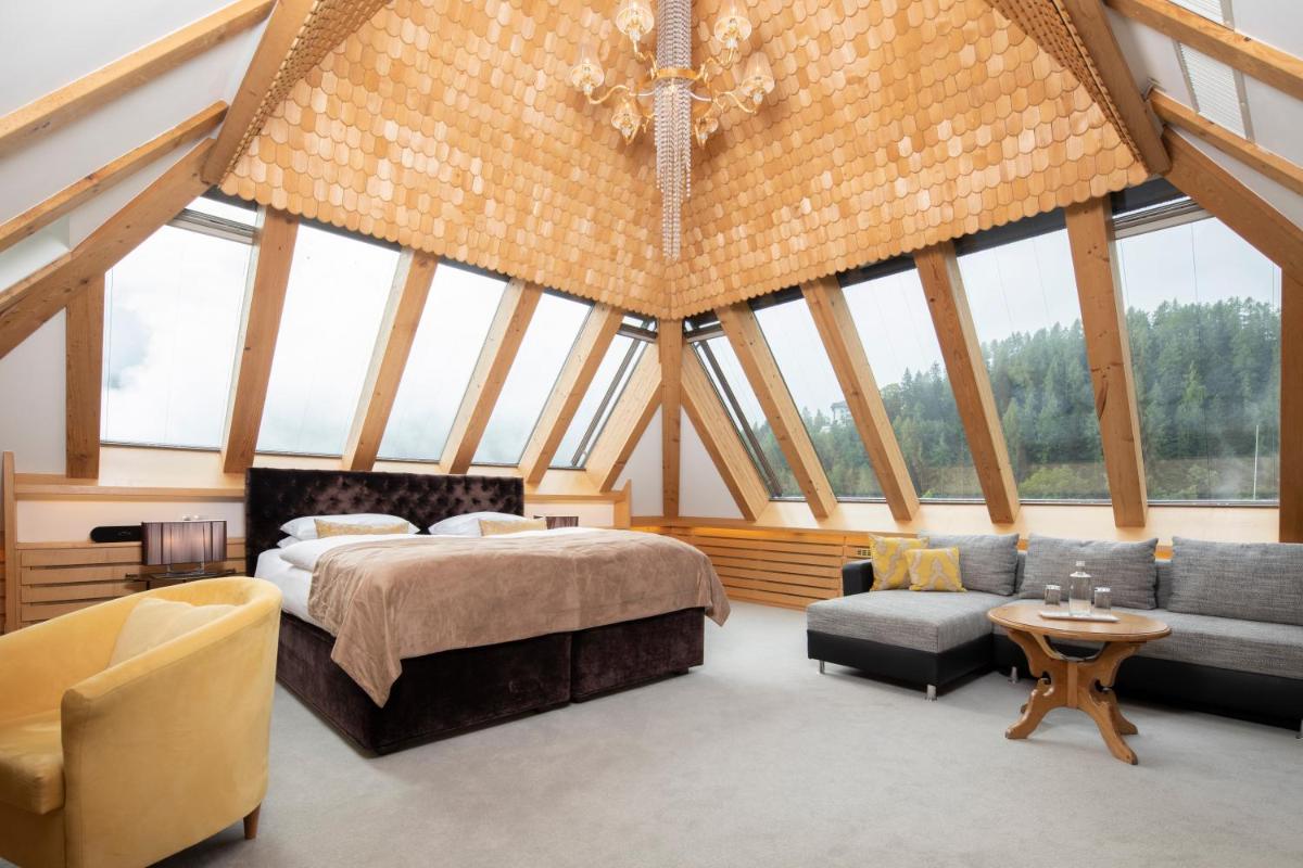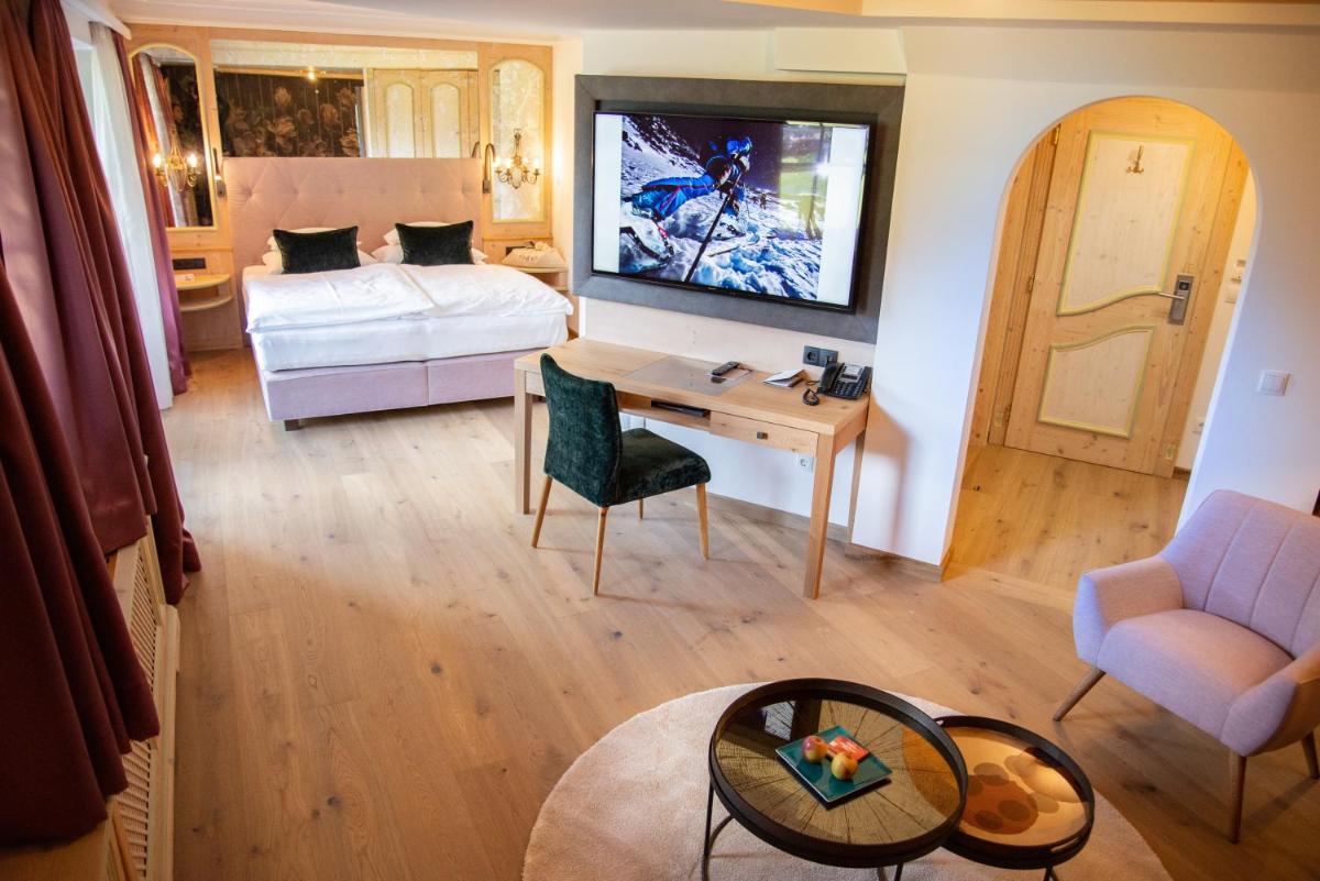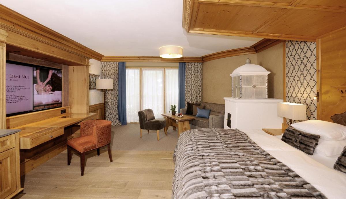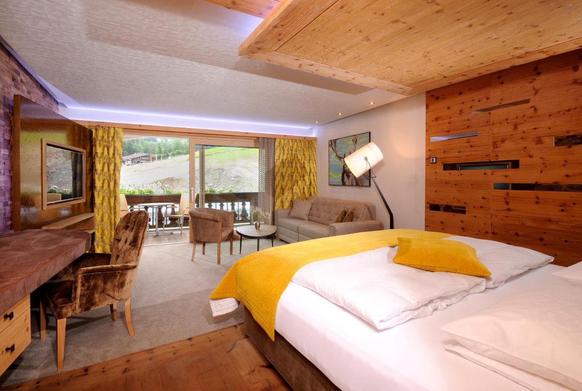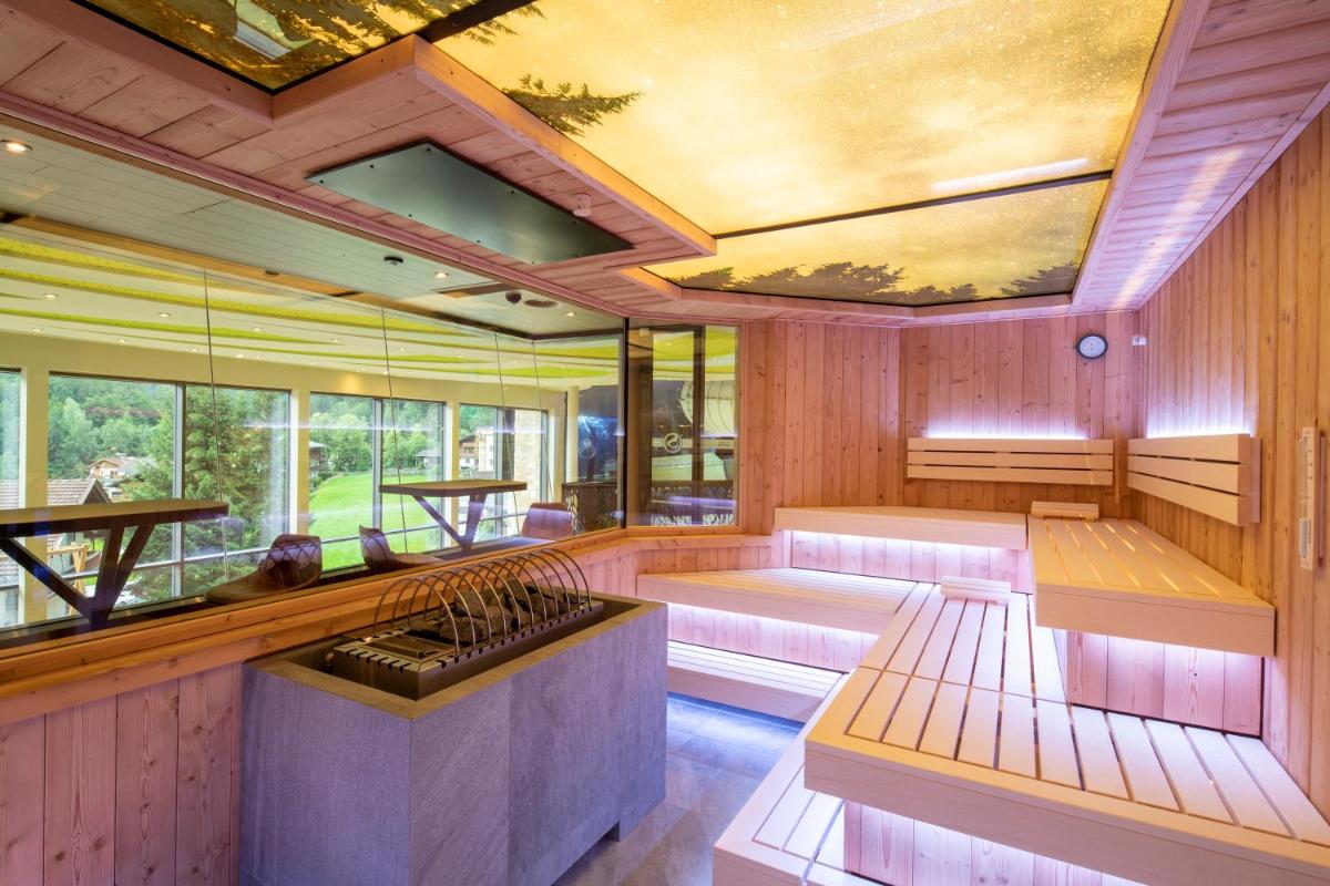 The rooms and suites have been designed with contemporary Alpine luxury, characterized by spacious areas, natural wood, high-quality fabrics, and fireplaces to create a warm and welcoming atmosphere. Many suites offer a private sauna or hot tub on the balcony, maximizing the pleasure of privacy with a view of the peaks.