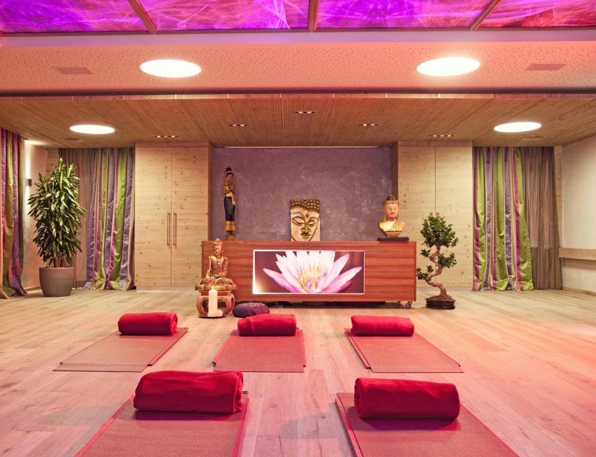 The resort offers an extremely varied activity program: guided hikes, direct access to ski slopes and hiking trails, as well as yoga and fitness classes. For leisure, guests can enjoy their private cinema, bowling alley, or a visit to the wine cellar, consolidating the image of a place where fun meets wellness.
