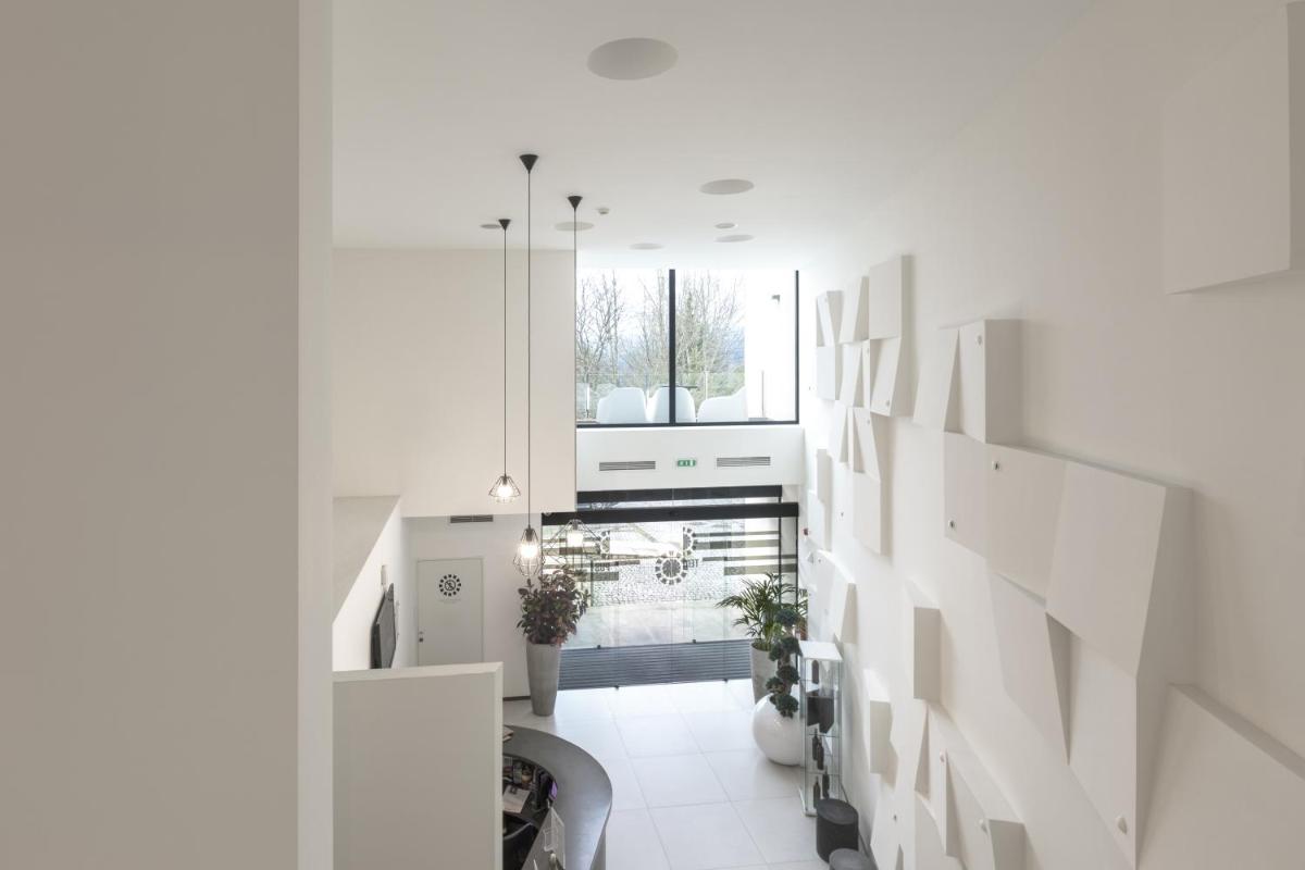 The hotel's architecture is contemporary and minimalist, designed to integrate with the surrounding environment and maximize the view of nature. Large windows offer unique perspectives of the Minho landscape, bringing the light and serenity of the outdoors directly into the indoor spaces.