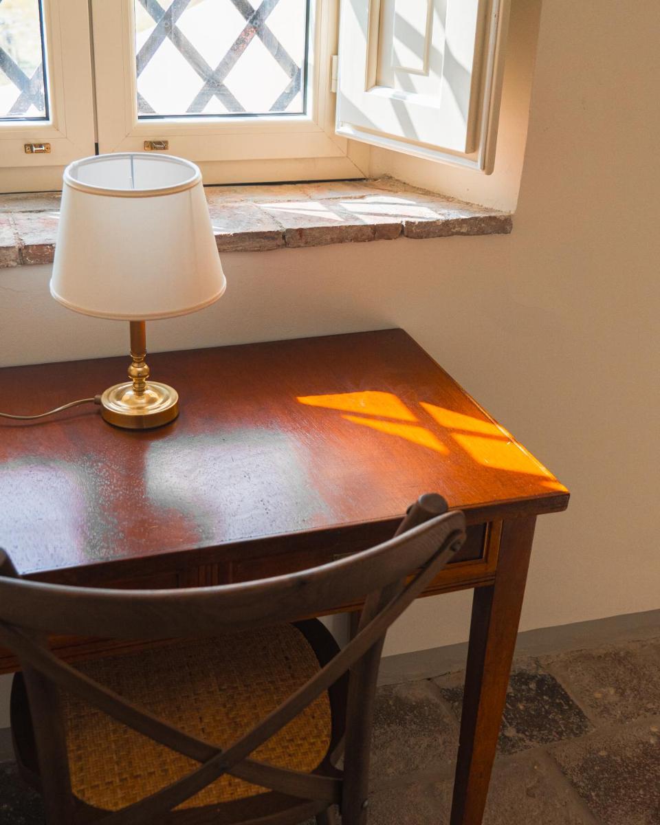 The estate offers accommodation for up to 6 guests in spacious rooms inside the original 17th-century villa. Each room features period floors, tasteful furnishings, air conditioning, private bathroom, Wi‑Fi, and serene views over the garden or countryside.